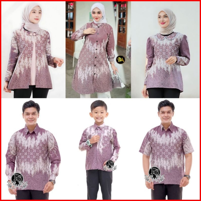 Couple Atasan Kemeja Hem Blus Tunik Motif Seroja Mauve Ungu Lilac Tranding International Batik Couple Terlaris Batik Kan
