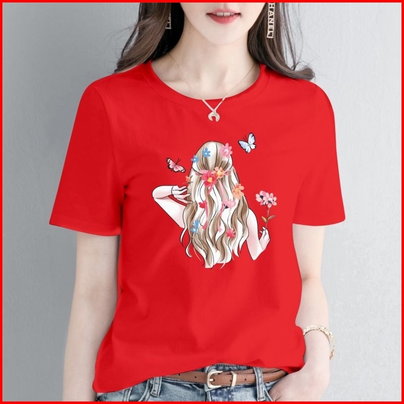 Kaos Wanita Motif A108 Atasan Bahan Cotton Combed