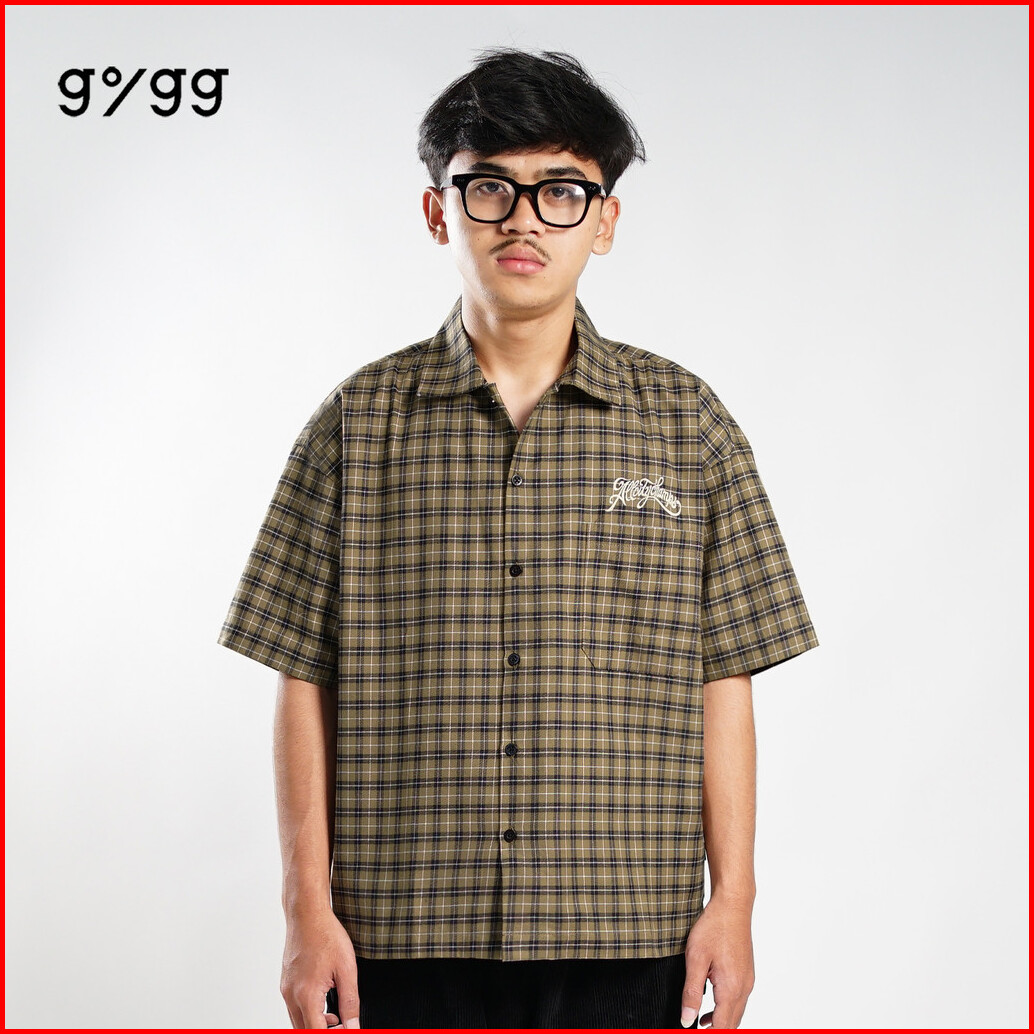 Gigg - Squared - Kemeja Boxy Flannel Pria Coklat - Kemeja Lengan Pendek Cowok - Boxy Shirt Brown