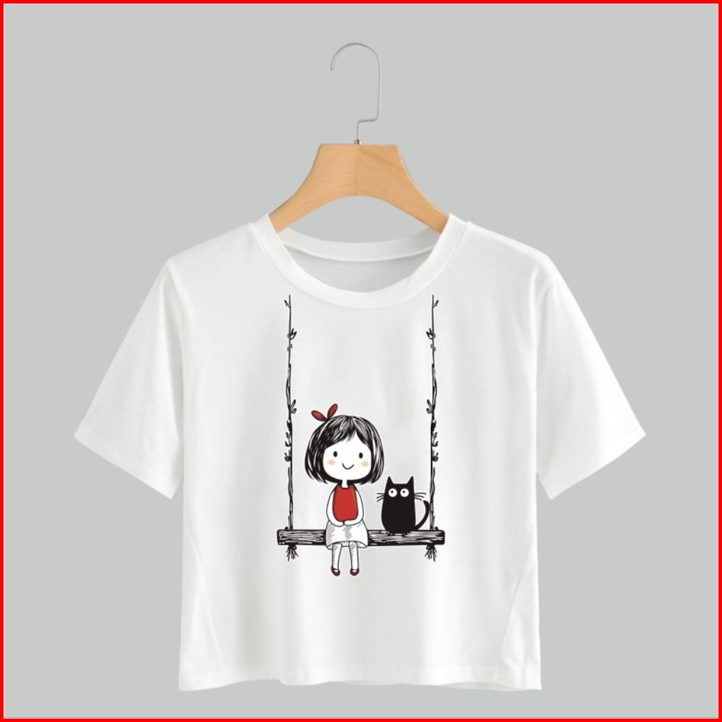 Kaos Crop Wanita Motif 153 Cotton Combed
