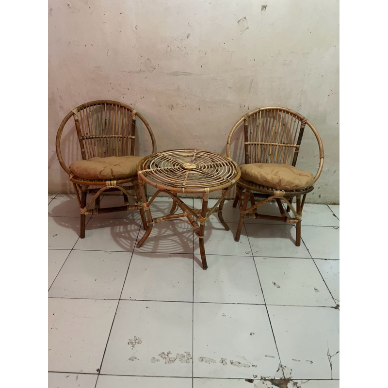 ( stok)1 set kursi teras kursi santai kursi rotan momon free bantal
