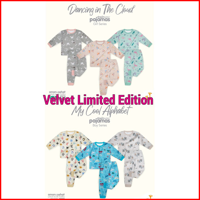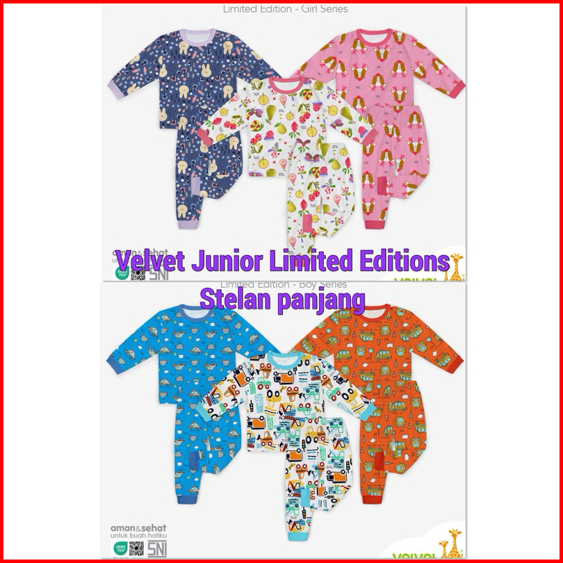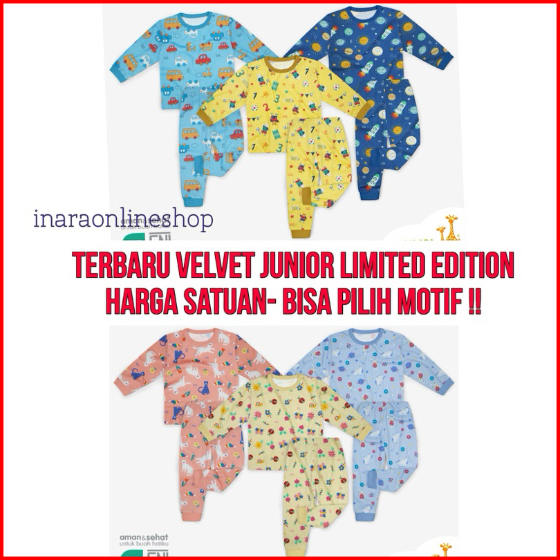 Limited Edition Velvet Junior Piyama Anak Baju Tidur Anak Stelan Panjang Sml Lb Xl Xxl