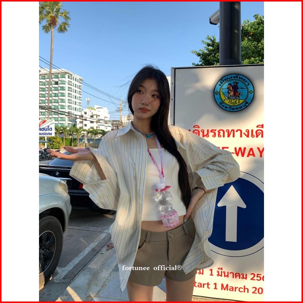 2toyoung Kemeja Fitted Fitted Shirt Kemeja Kerja Wanita Kemeja Lengan Panjang Kemeja Katun Wanita Biru Stripe
