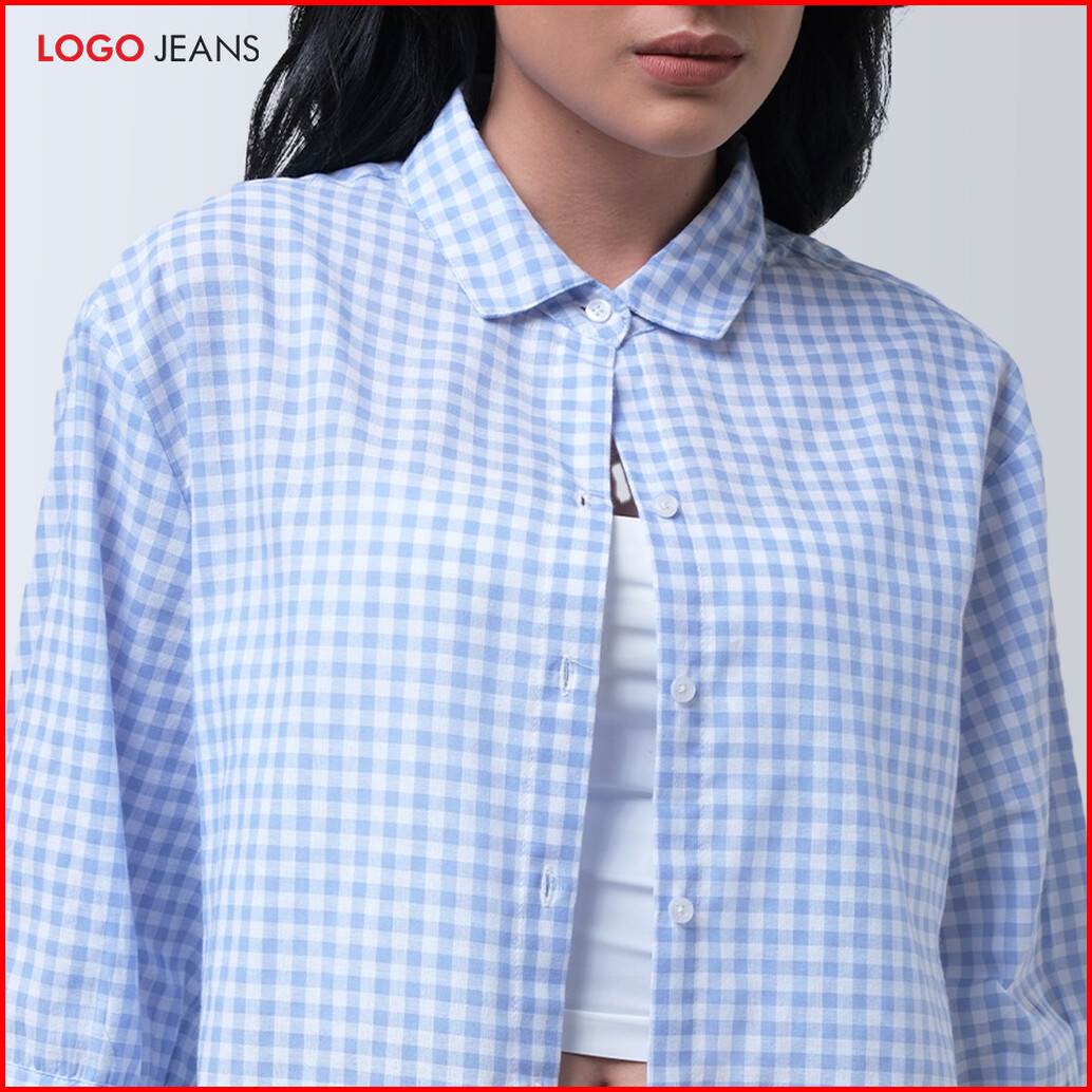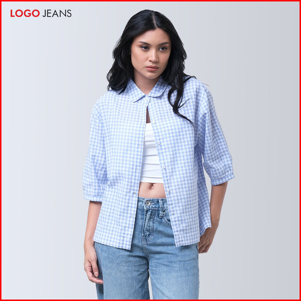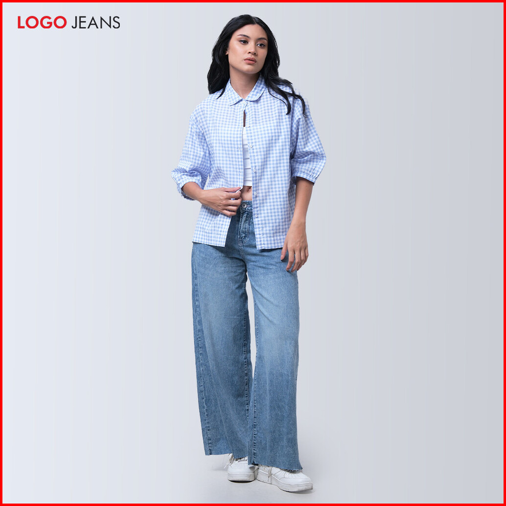 Logo Jeans Kemeja Wanita Myles Blue White 23a39l5bi