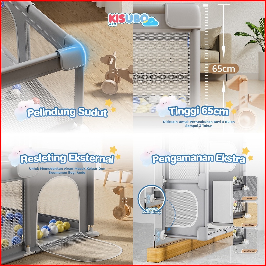 Kisubo Playpen Pagar Pengaman Bayi Tempat Bermain Anak Pagar Mainan Anak Pagar Bayi Kolam Main Anak