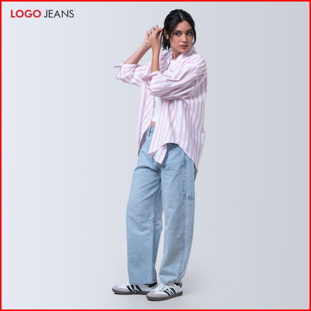 Logo Jeans Kemeja Wanita Lenka Pink White 24a42l5pw