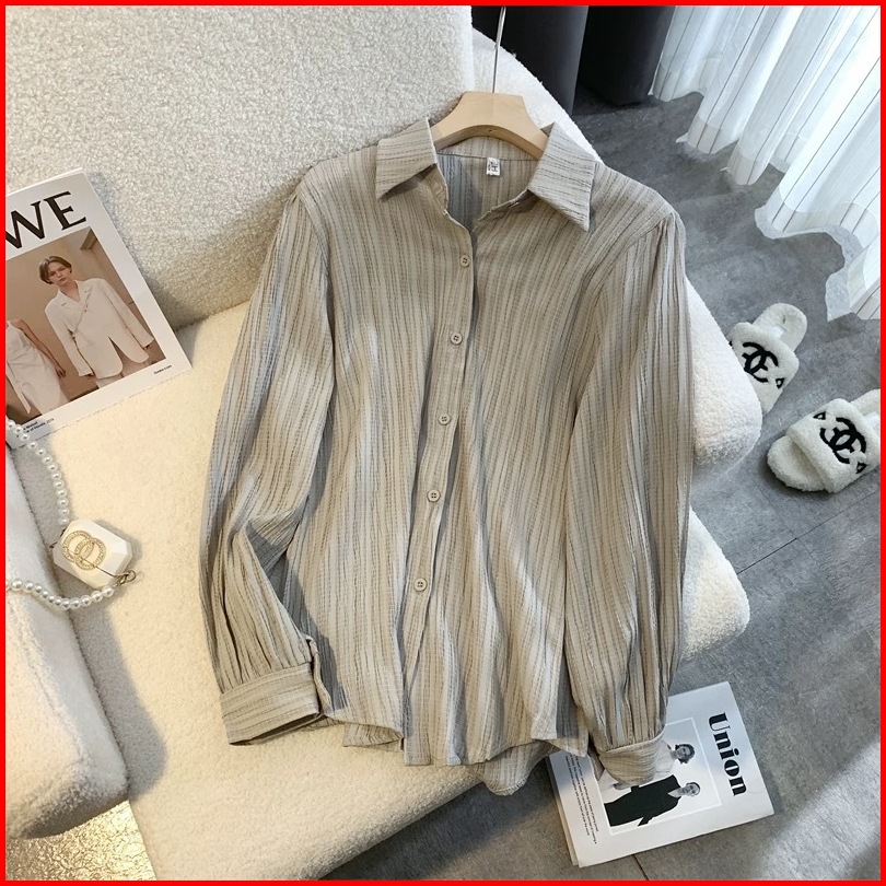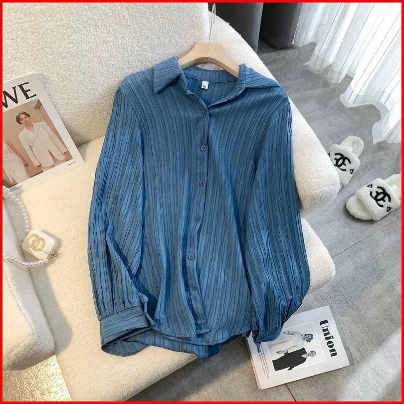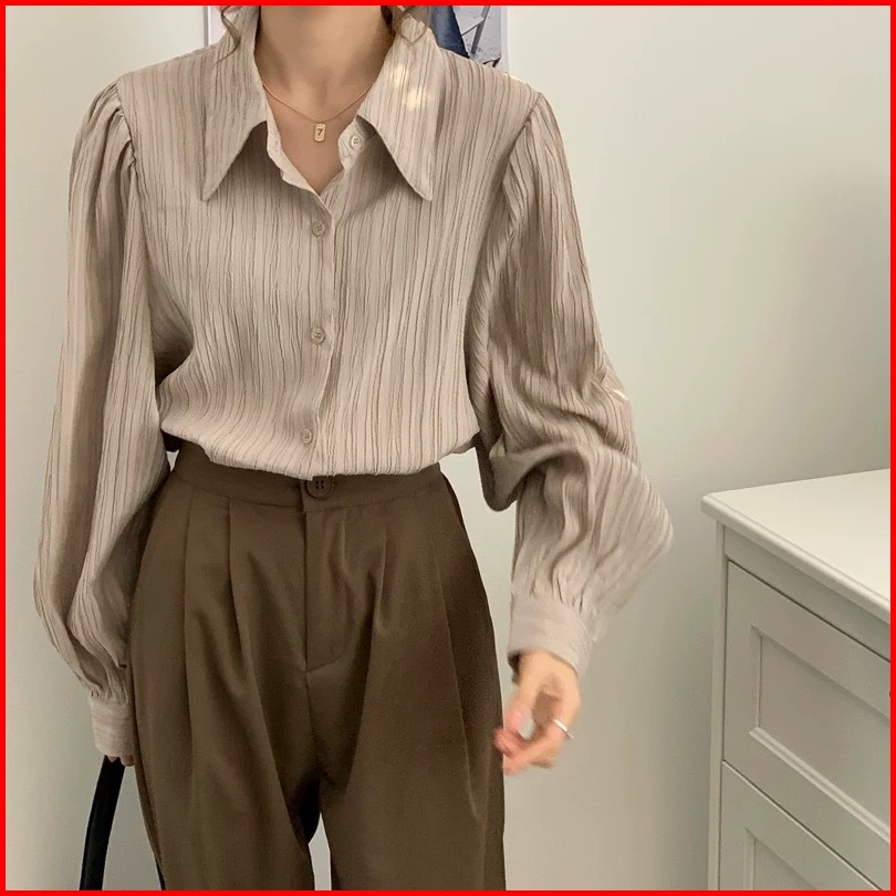 Forteid Crinkle Shirt Korean Style Oversize Kemeja Lengan Panjang Wanita Terbaru Blouse Import Baju Atasan Wanita Terbar