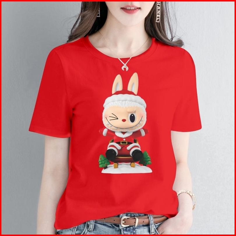Kaos Wanita Natal Labubu 08 Atasan Bahan Asli Cotton Combed