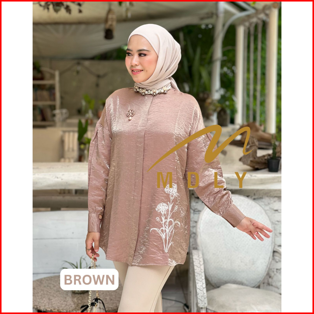 Mdly Raline Shirt Atasan Wanita Kemeja Kerja Bahan Shimmery Silk Premium Terbaru Polos Shirt Casual