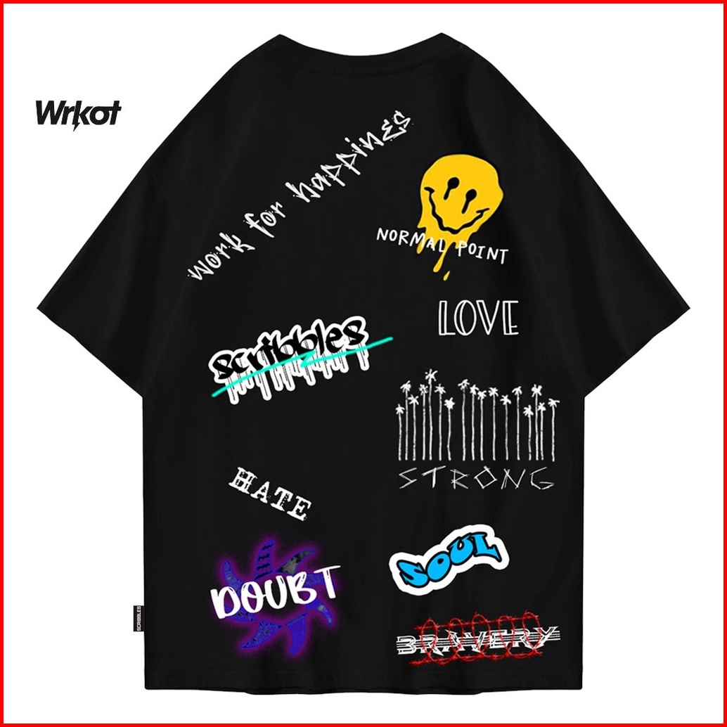 Workout Stretwear X Scribbles Kaos Oversize Original Workout Basic Black Smile
