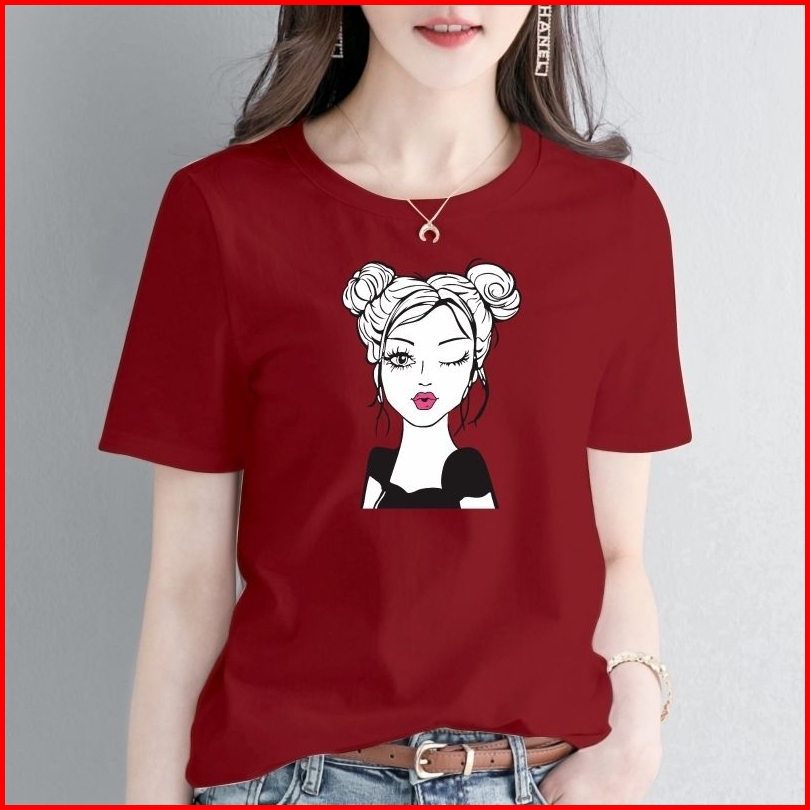 Baju Kaos Atasan Wanita Premium Ac 08 Bahan Asli 100 Cotton Combed