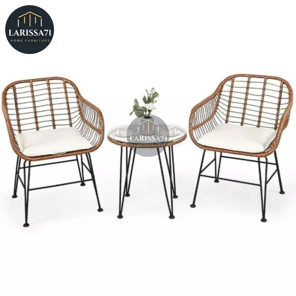Set Kursi Teras Rotan Minimalis Rangka Besi Aesthetic Cafe + Jok Busa