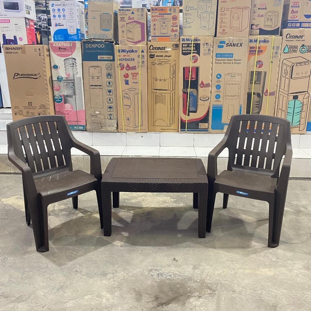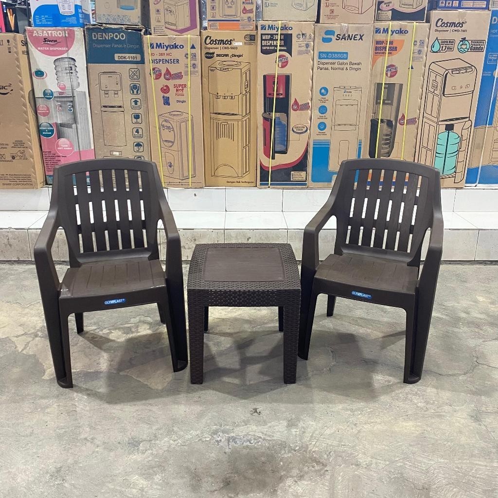 Kursi Taman Olymplast Set 2 Kursi + Meja OCT-R/OST-R Anyaman Rotan Plastik