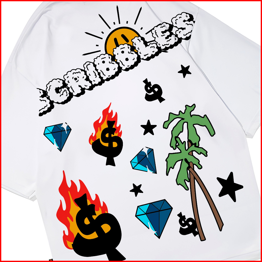 Workout Stretwear X Scribbles Kaos Oversize Original Workout Shiny Pakaian Pria Dan Wanita
