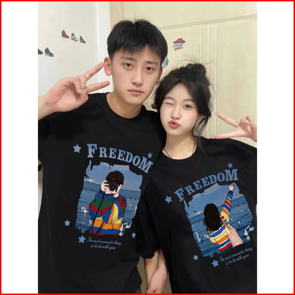 Kaos Pasangan Pria 100 Katun Longgar Gaya Amerika Retro Romantis Motif Freedom Pantai The Most Romantic Thing Is To Be W