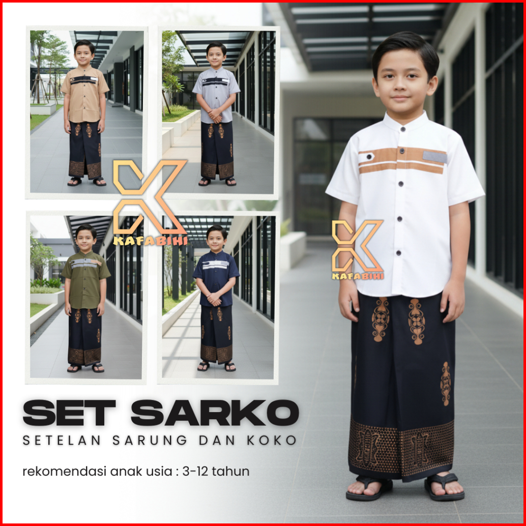 Setelan Koko Sarung Anak Laki-laki Usia 3-12 Tahun Jordan Series