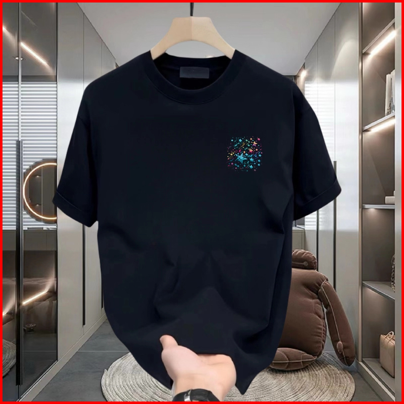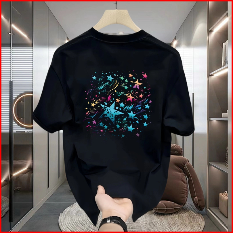 Motif Cetakan Bintang-bintang Berwarna-warni Gaya Trendy Amerika Kaos Pria Terbaru 2025 Kaos Lengan Pendek Pria Kaos Pri