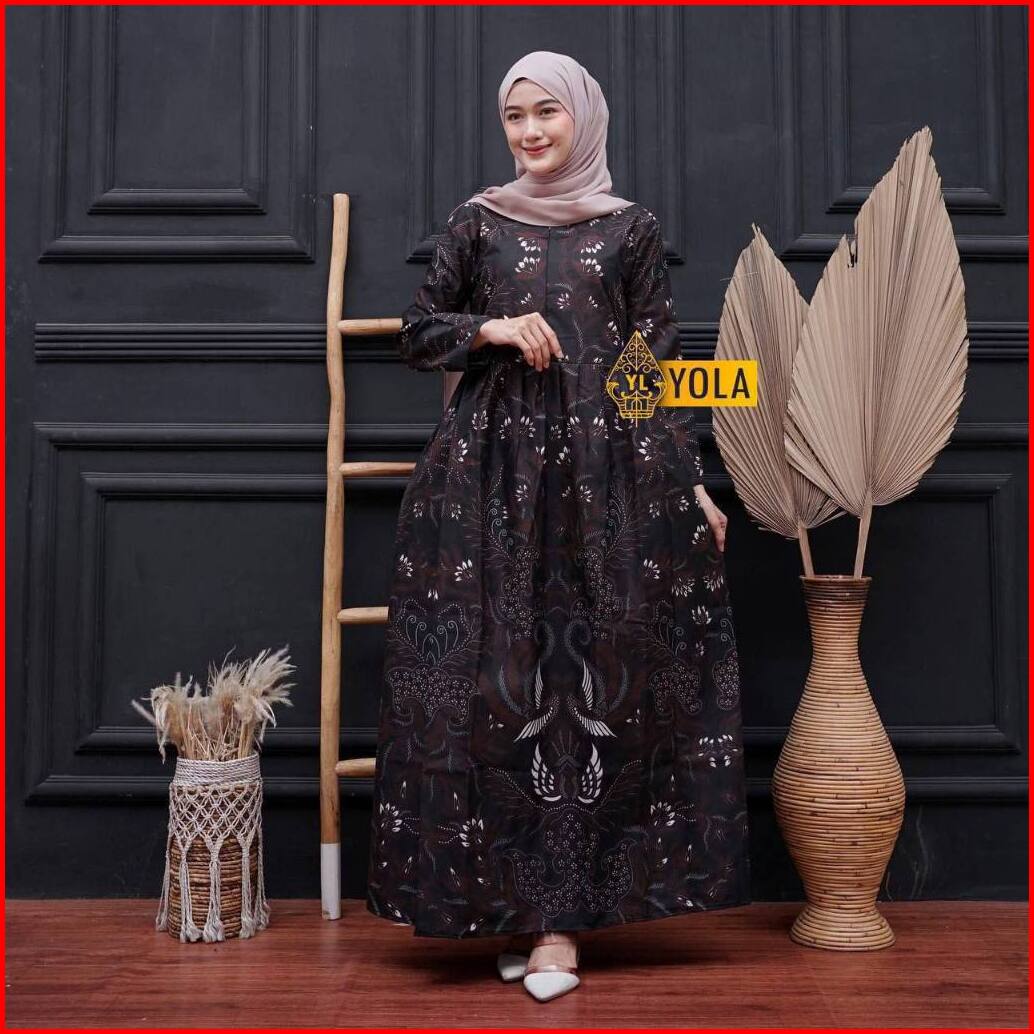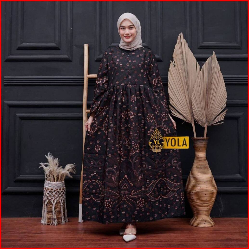 Gamis Batik Wanita Kekinian Tali Samping Resleting Depan