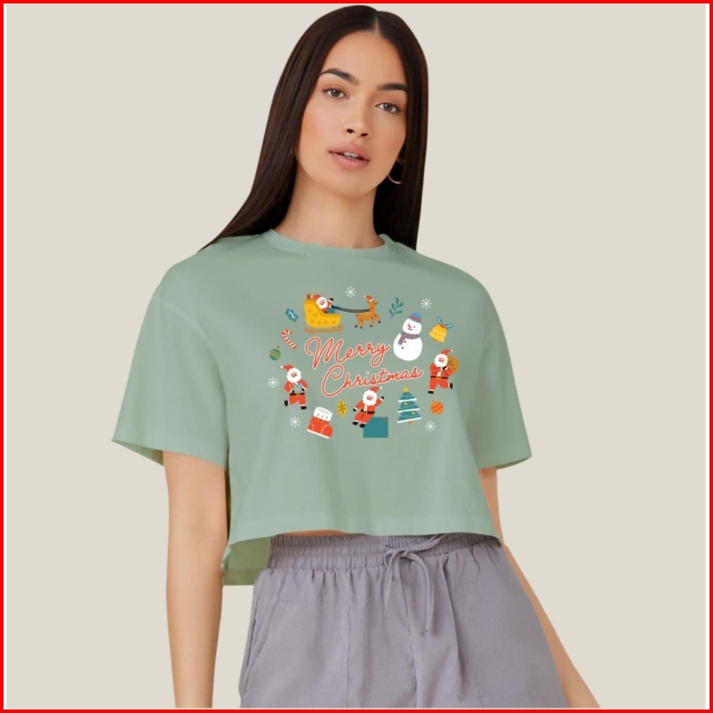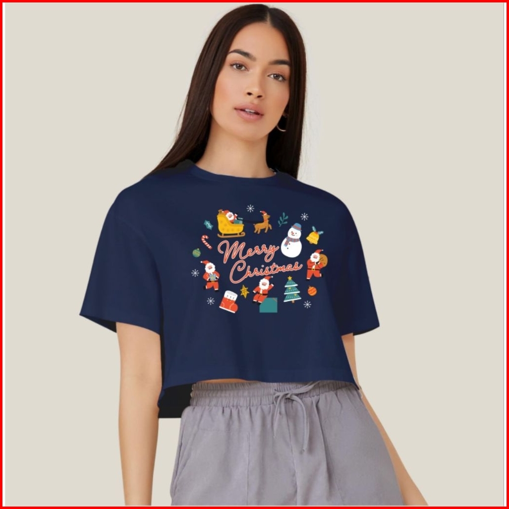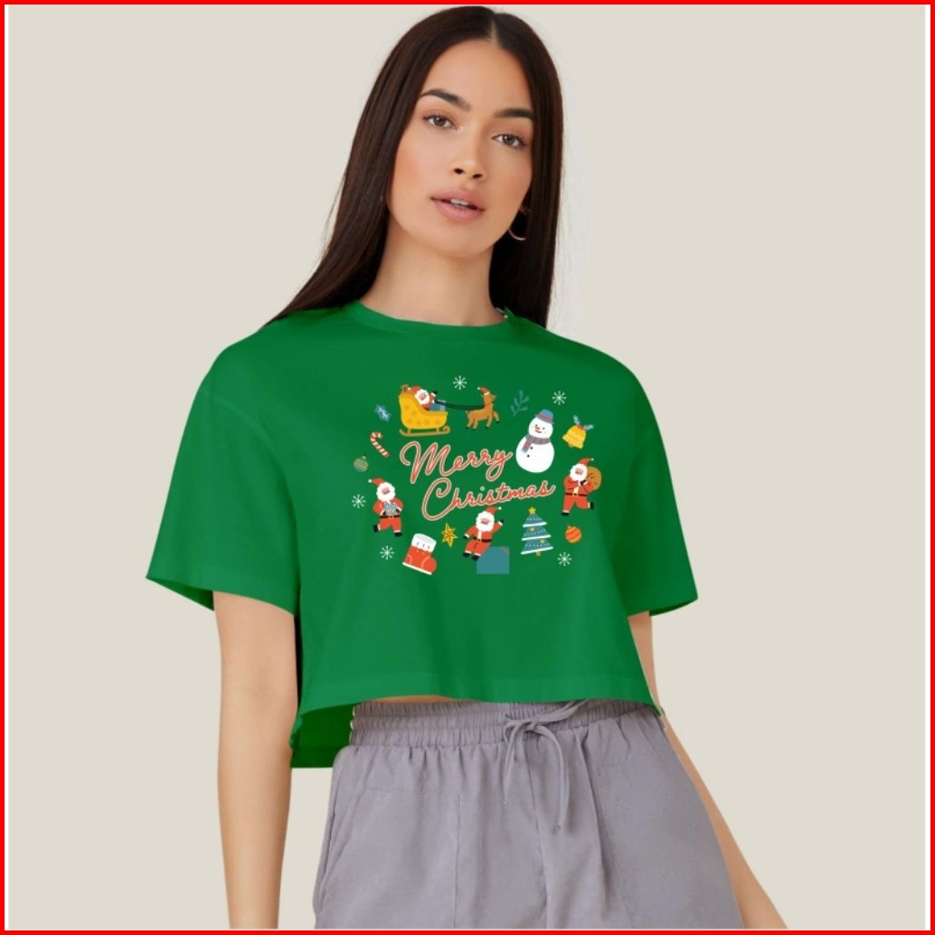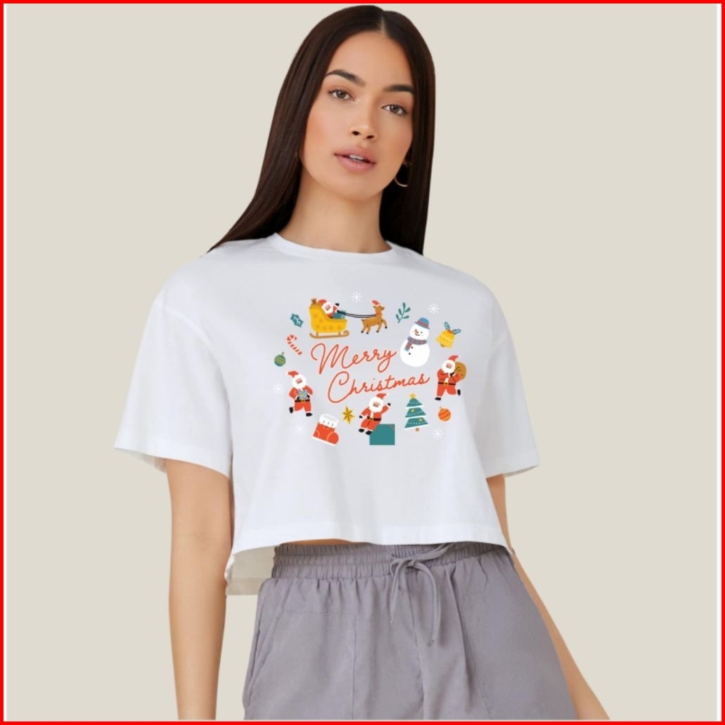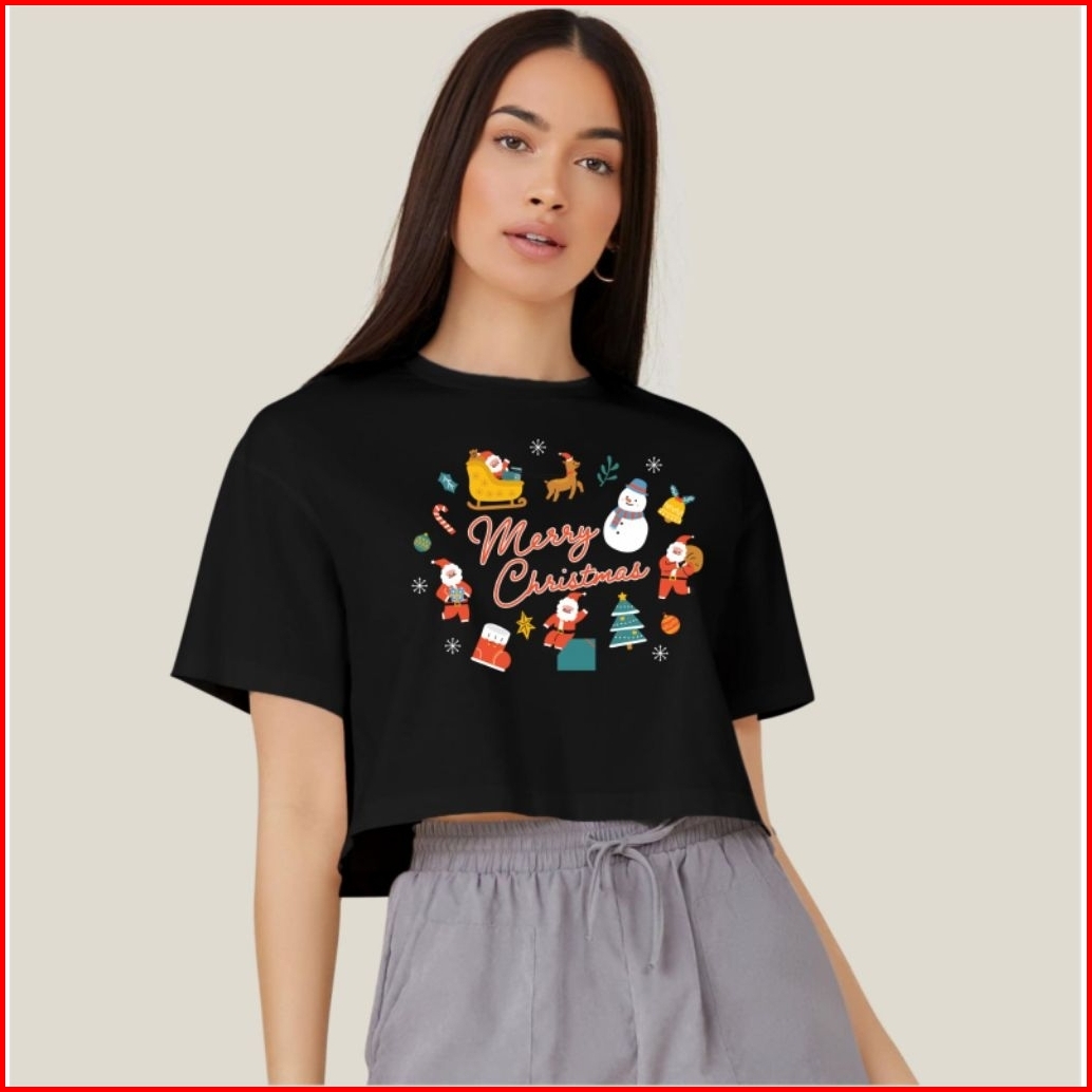 Kaos Crop Natal Motif A19 Atasan Wanita Cotton Combed