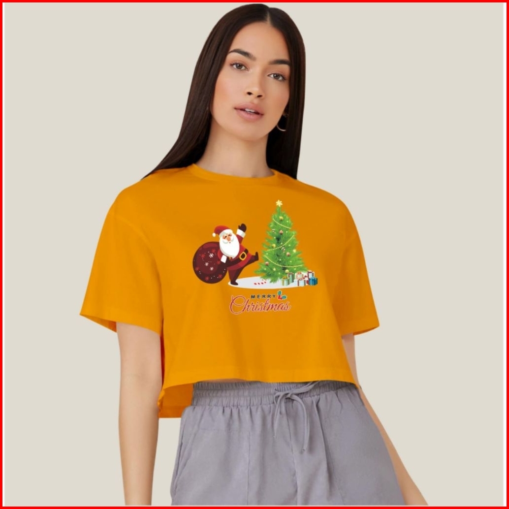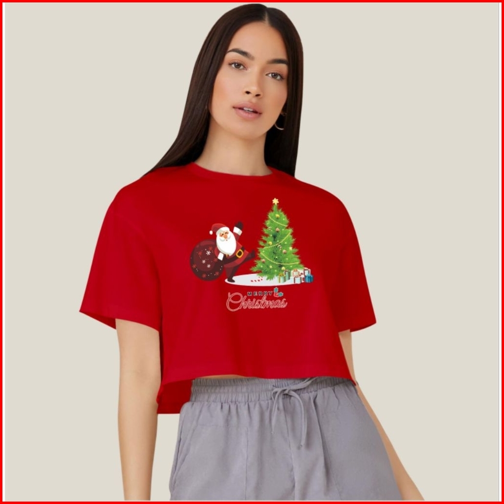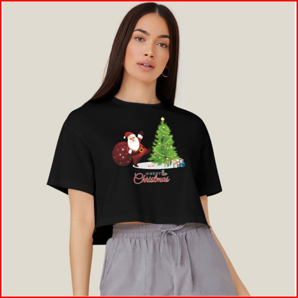 Kaos Crop Natal Motif A13 Atasan Wanita Cotton Combed