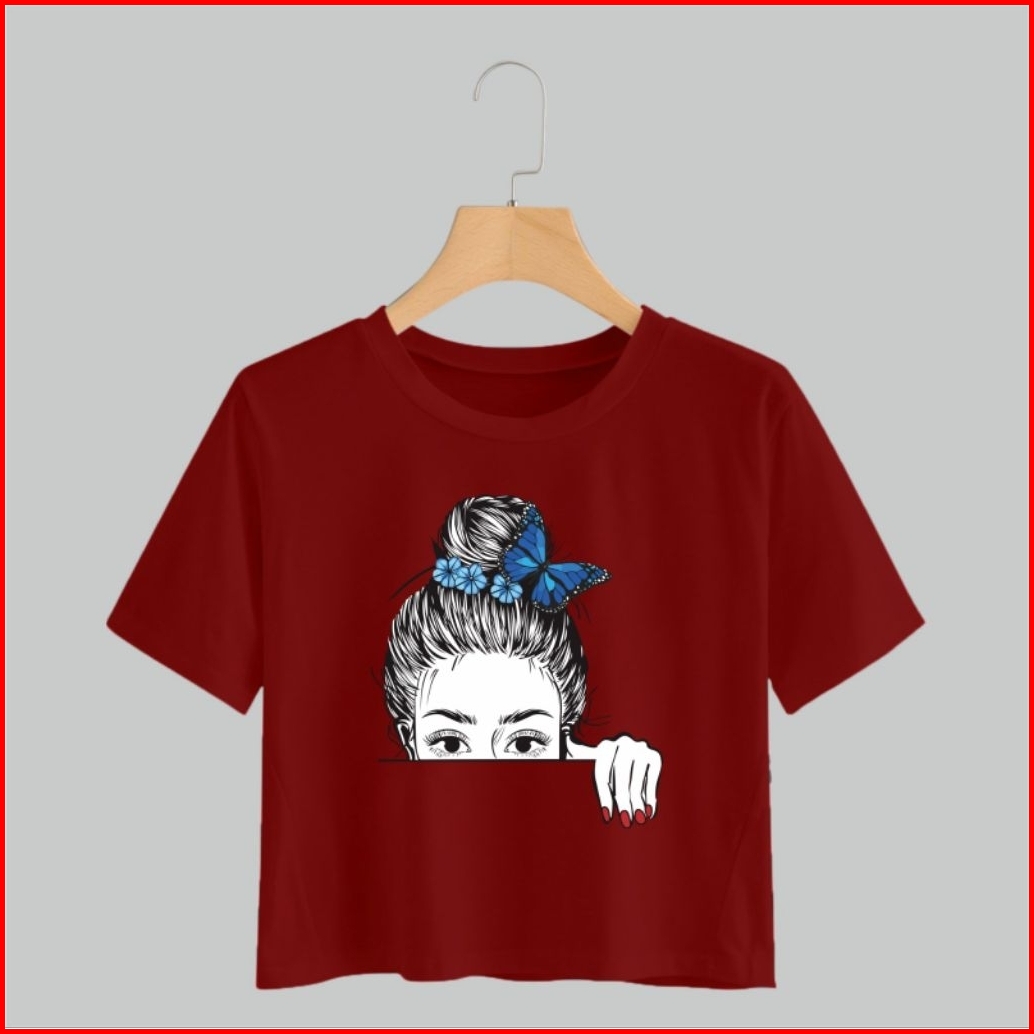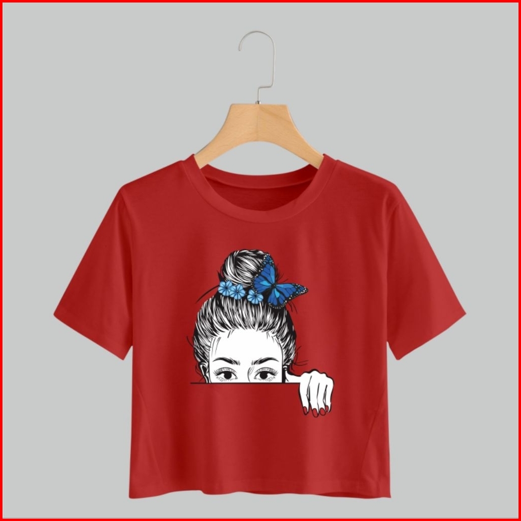 Kaos Crop Wanita Motif 144 Atasan Bahan Cotton Combed