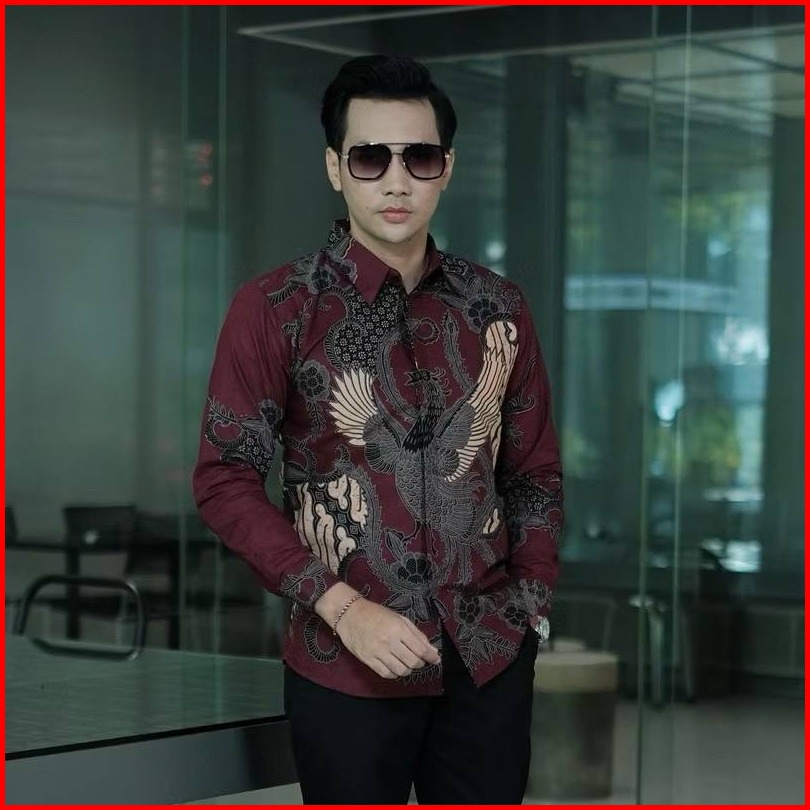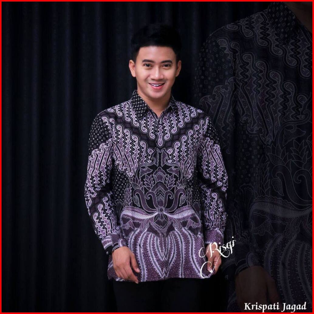 Kemeja Batik Pria Lengan Panjang Baju Batik Hitam Modern
