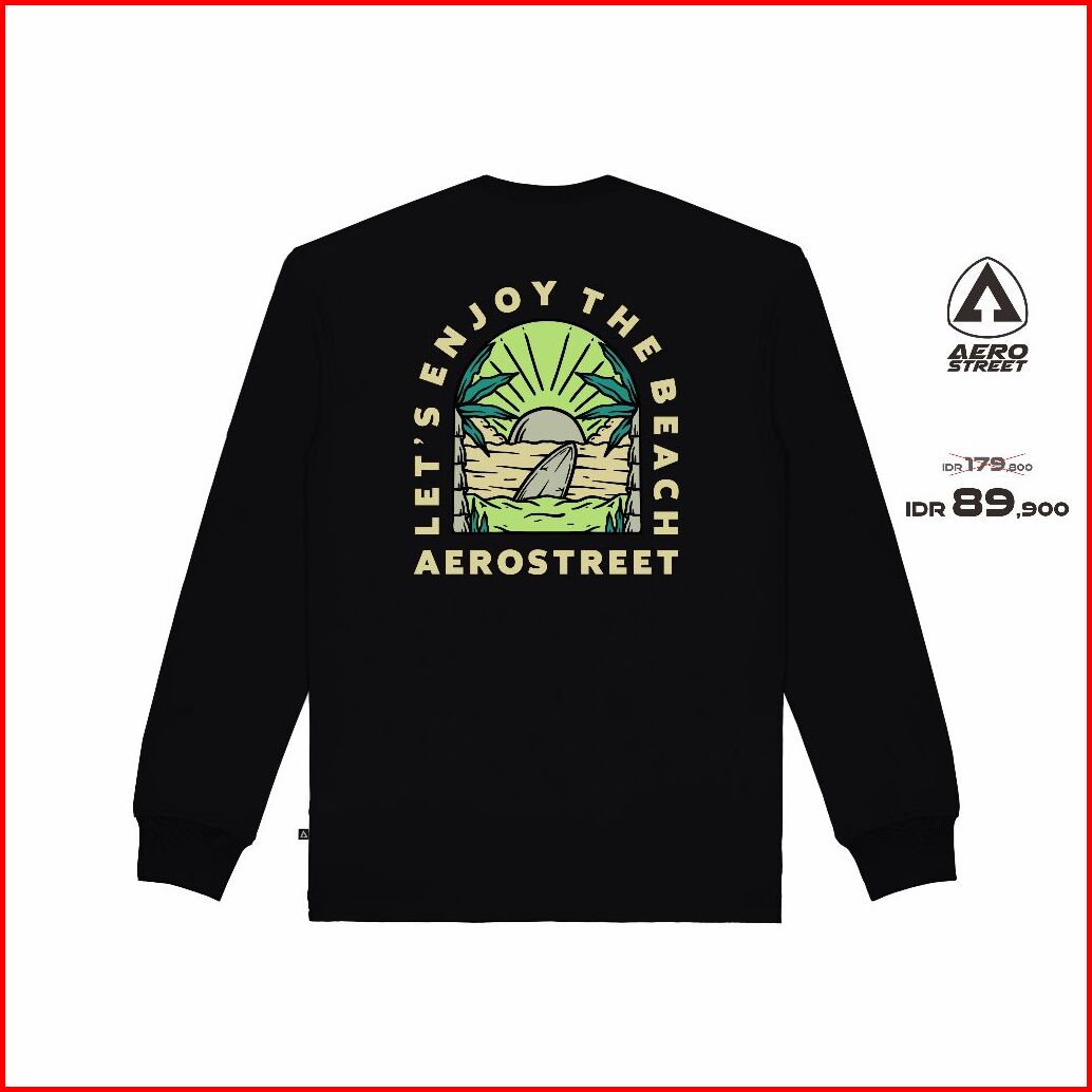 Aerostreet T Shirt Long Sleeve Lets Enjoy The Beach Hitam Kaos Longsleeve Oadaa