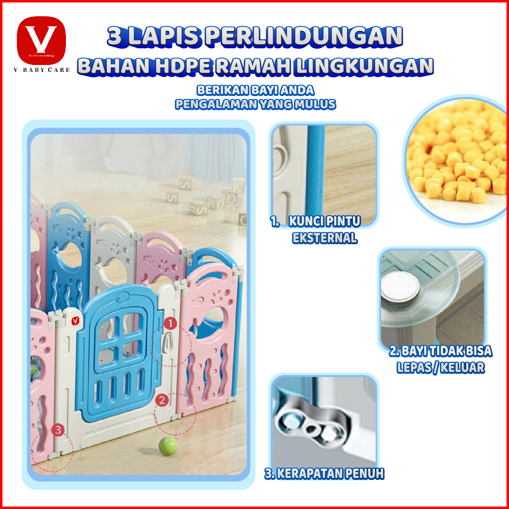 V-baby Care Pagar Bermain Anak Pagar Bayi Babyfence Import Kokoh Bisa Dilipat Motif Bulan Bintang 6 Ukuran Gratis Matras