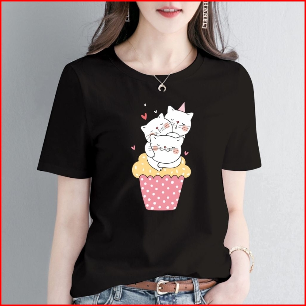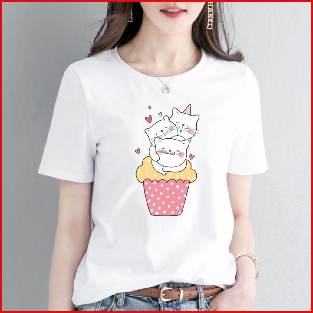 Kaos Wanita Motif A127 Atasan Bahan Cotton Combed