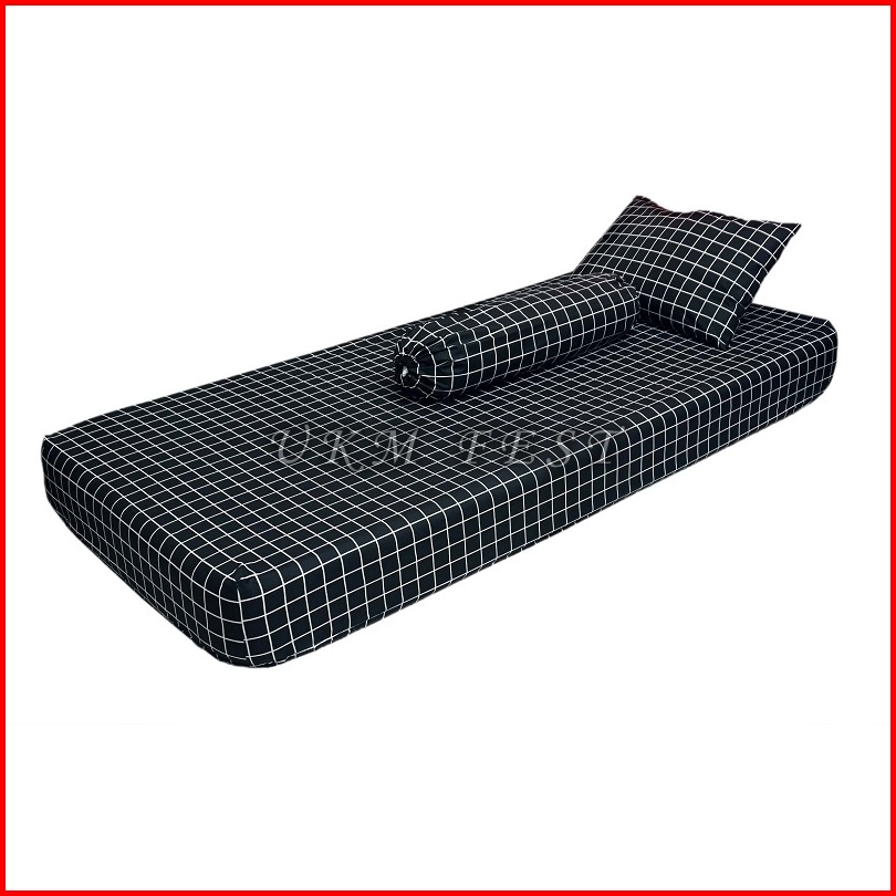 Sprei Kotak Aesthetic Tebal 20cm Bonus Sarung Bantal Guling Size 90x200 120x200 160x200