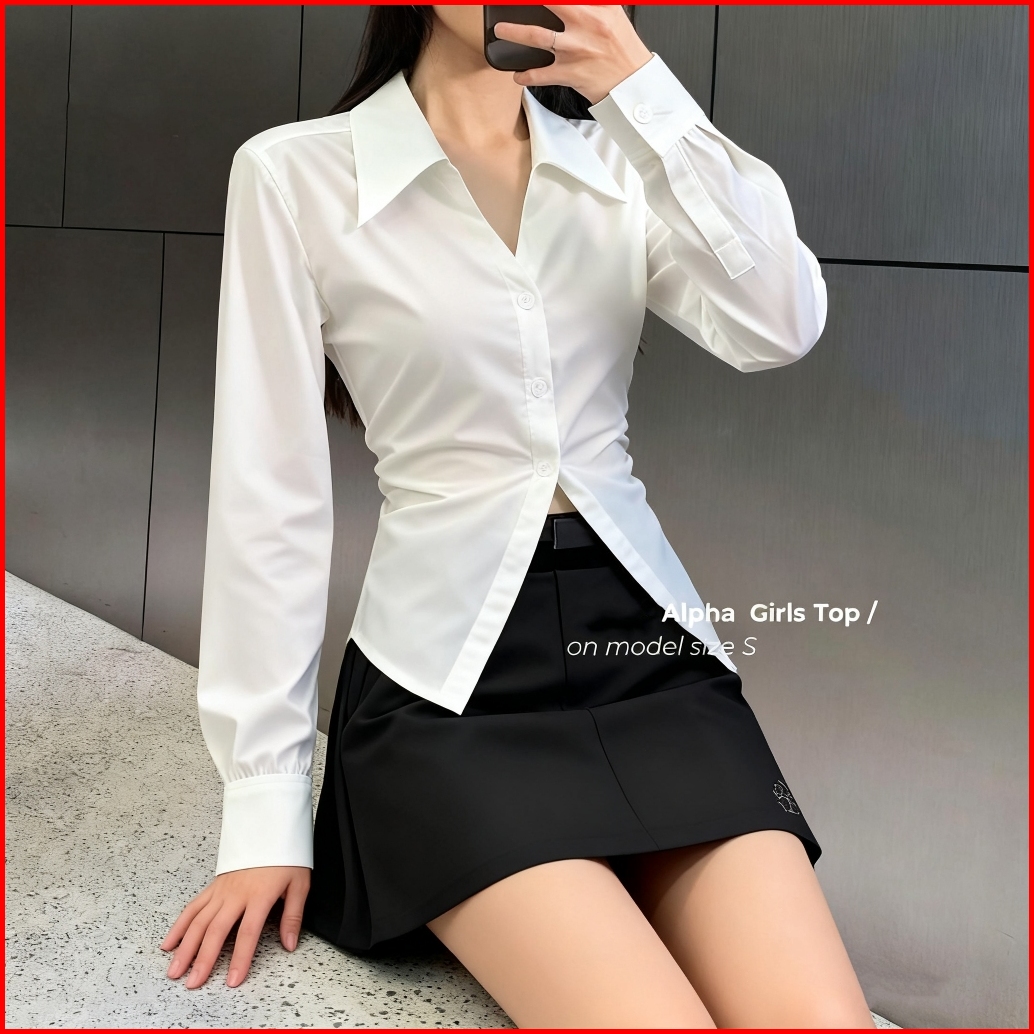 Ctct Kemeja Lengan Panjang Kerah Putih Wanita 2025 New Trim Top Wanita