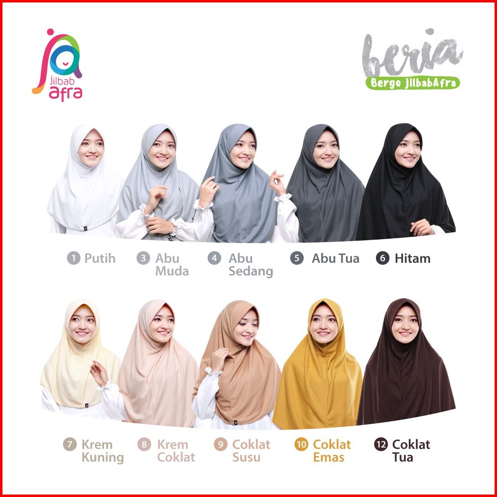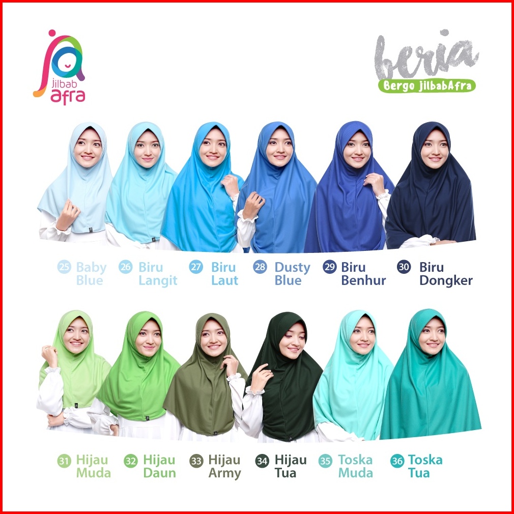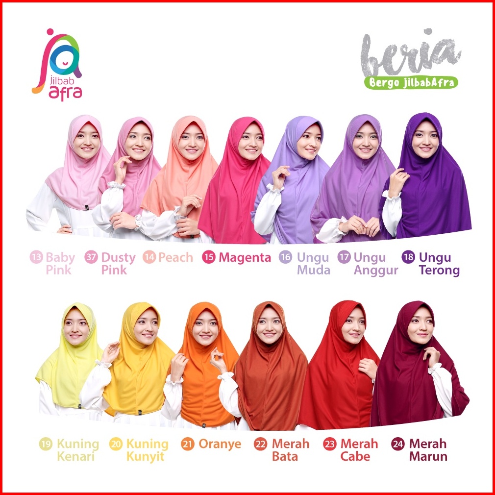 Putih, Abu Muda, Abu Sedang, Abu Tua, Hitam, Krem, Krem Coklat, Coklat Susu, Coklat Emas, Cokelat Tua, Baby Pink, Dusty Pink, Peach, Magenta, Ungu Muda, Ungu Anggur, Ungu Terong, Kuning Kenari, Kuning Kunyit, Oranye, Merah Bata, Merah Cabe, Merah Marun, Baby Blue, Biru Langit, Biru Laut, Dusty Blue, Biru Benhur, Biru Dongker, Hijau Muda, Hijau Daun, Hijau Army, Hijau Tua, Toska Muda, Toska Tua