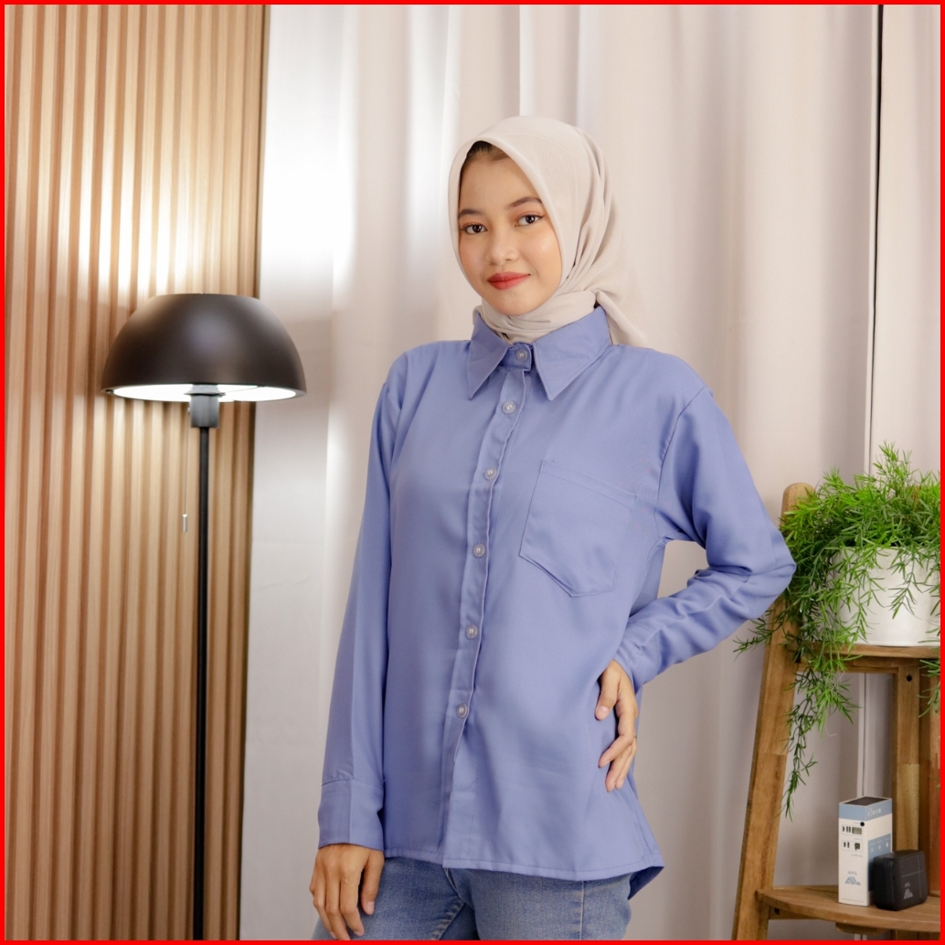 A G Apparel Kemeja Polos Wanita Lengan Panjang Carla Shirt Atasan Formal Basic