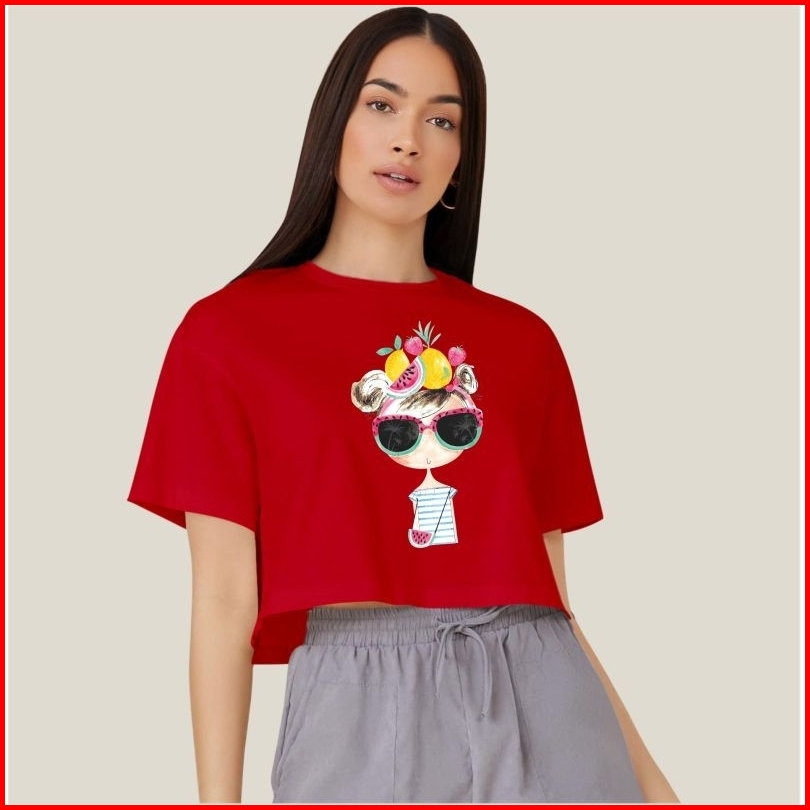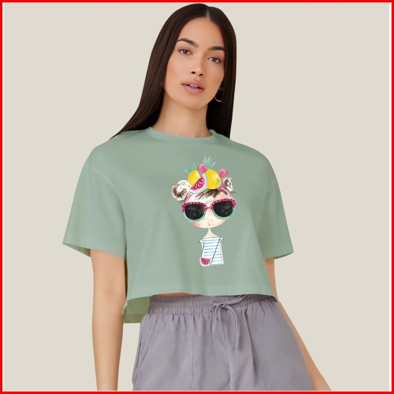 Kaos Crop Wanita Motif 124 Atasan Bahan Cotton Combed