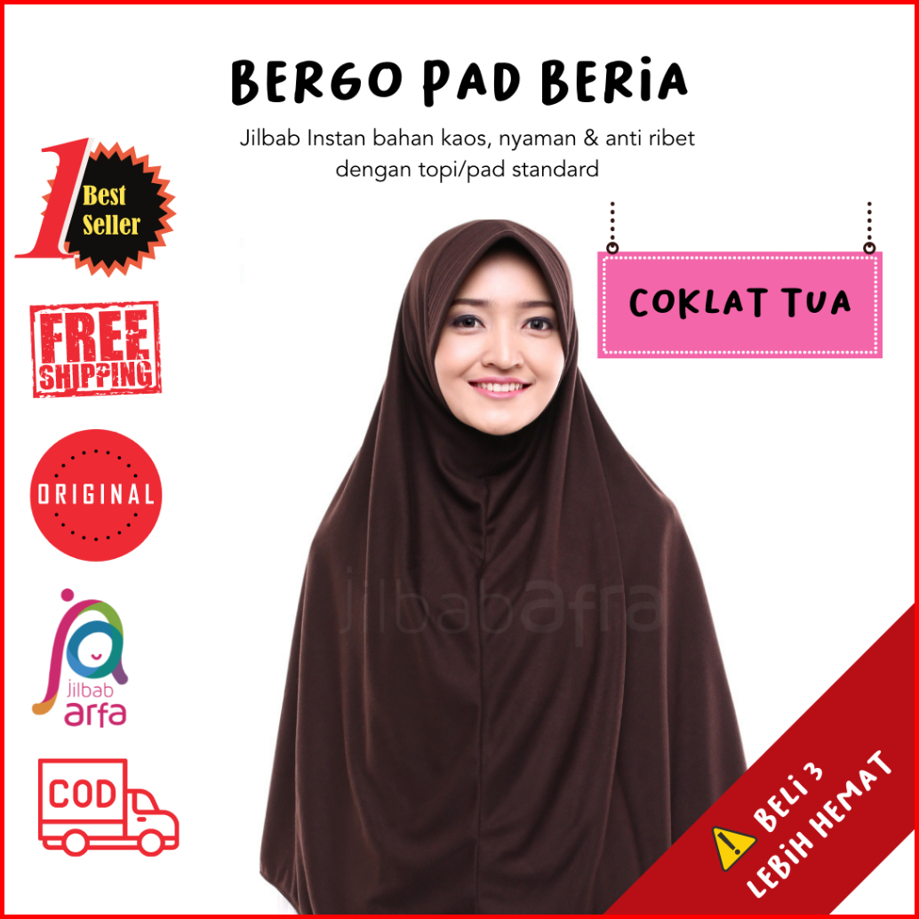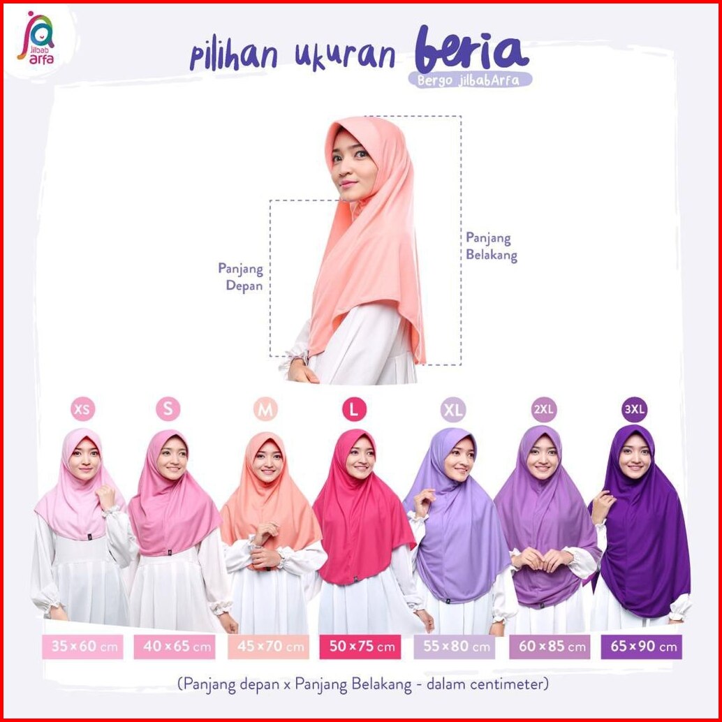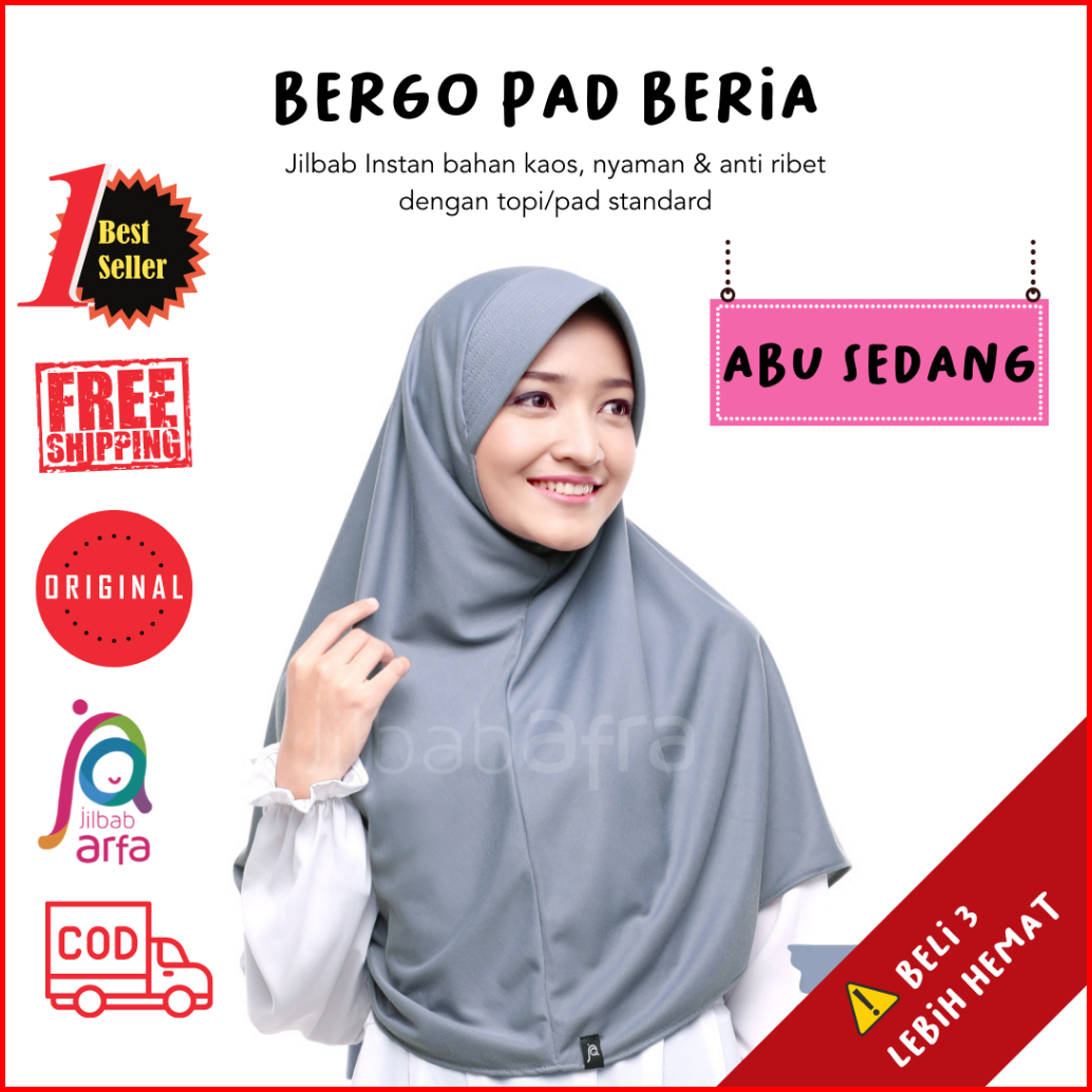 Bergo Sekolah Jilbab Arfa Beria Kerudung Pad Pet Bahan Kaos Adem