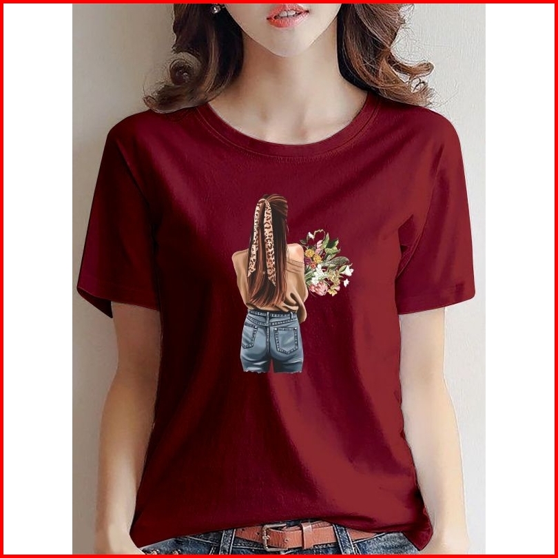 Kaos Atasan Wanita Premium Rambut Lurus Bahan Asli 100 Cotton Combed