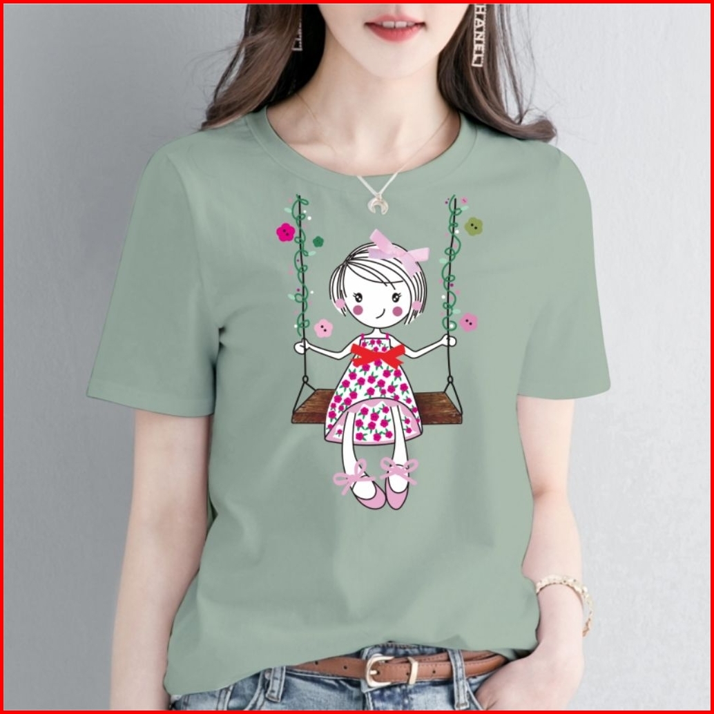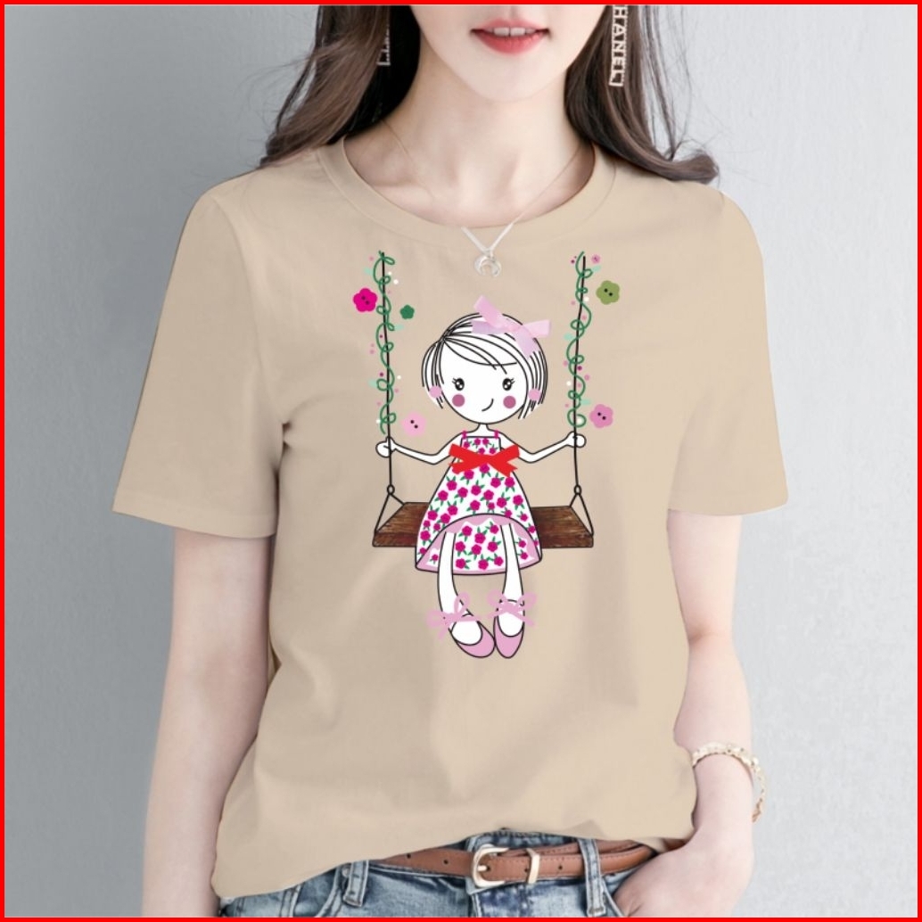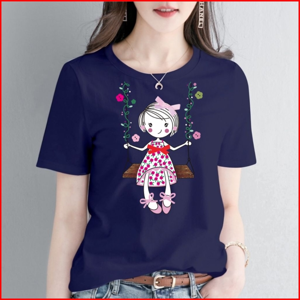 Kaos Wanita Motif A143 Cotton Combed O-neck
