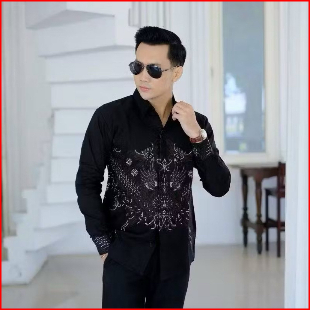 Kemeja Batik Pria Hitam Elegan Lengan Panjang - Tampil Rapi Berkelas