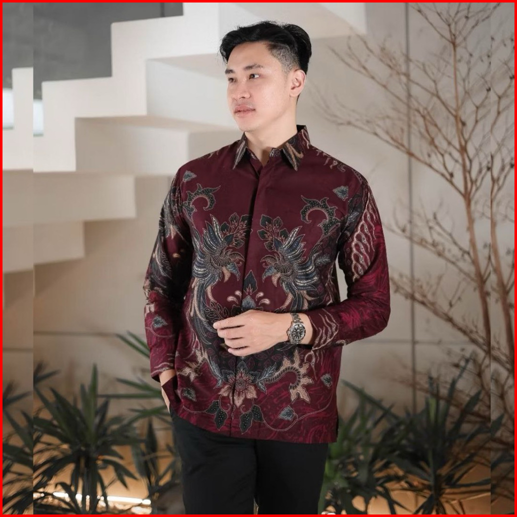 Batik Pria Modern Lengan Panjang Look Mewah Warna Hitam