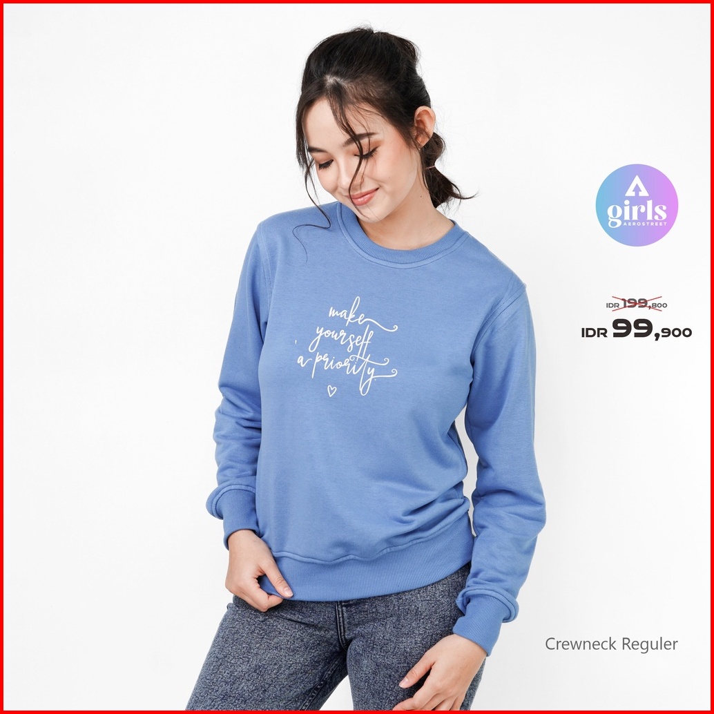 Aerostreet Crewneck Make Yourself Priority Blue Sweater Swetshirt 1e000