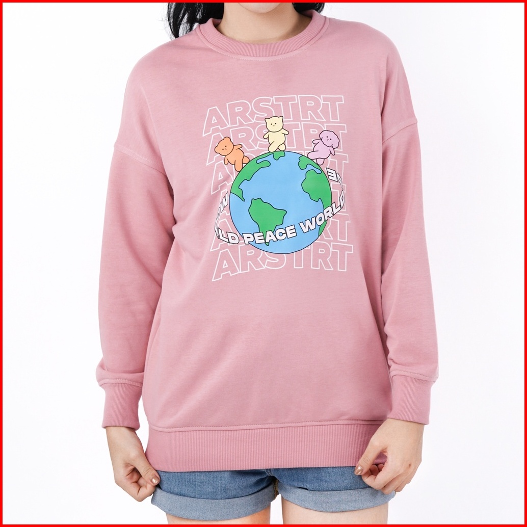 Aerostreet Crewneck Oversize Peace World Dusty Pink Sweater Jumper 1e001