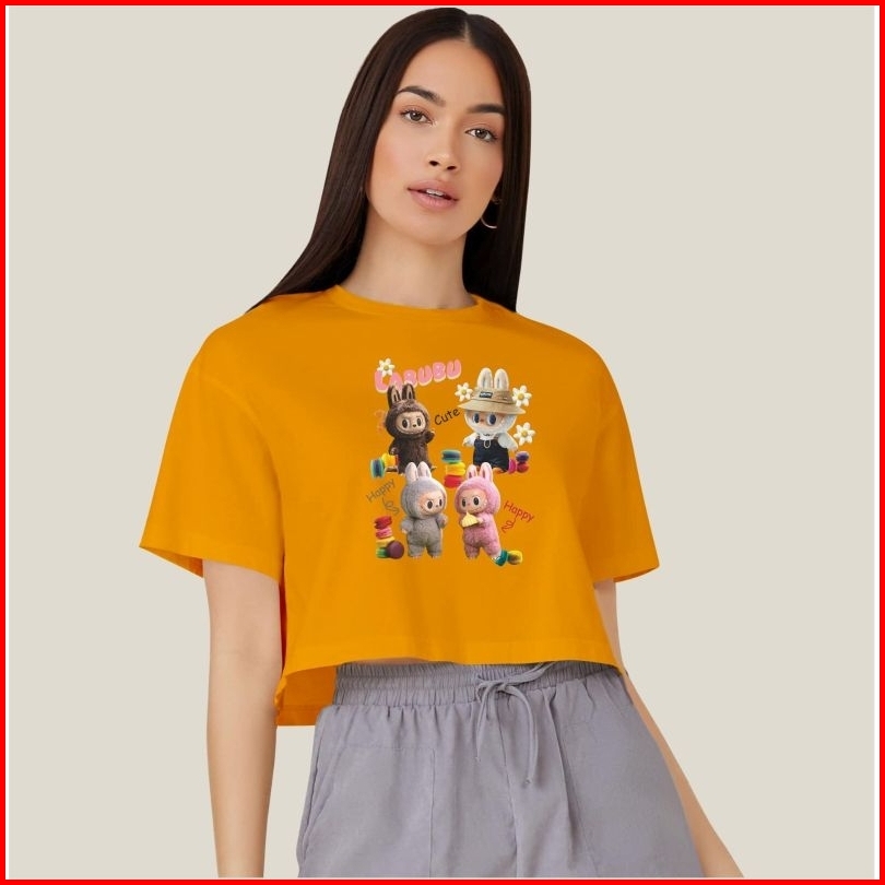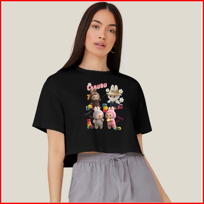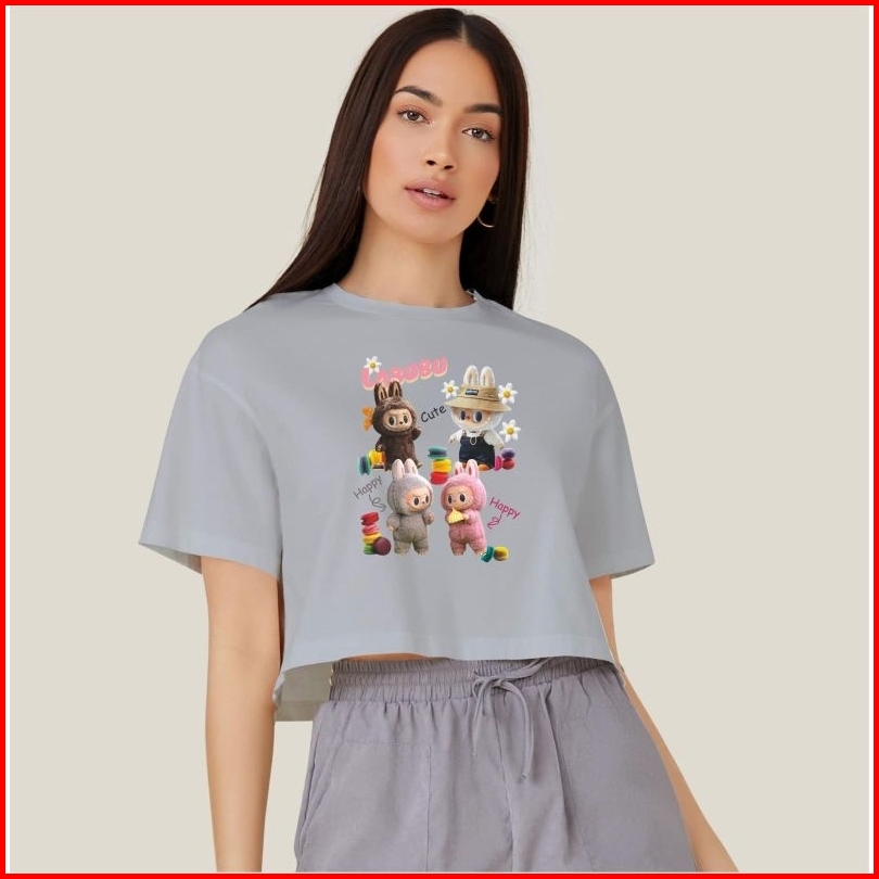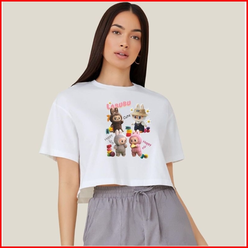 Kaos Croptop Gambar Labubu 91 Atasan Wanita Bahan Asli Cotton Combed