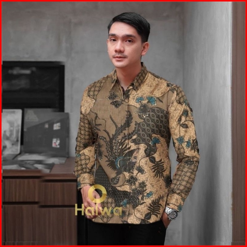Kemeja Batik Pria Lengan Panjang Cowok Baju Atasan Katun