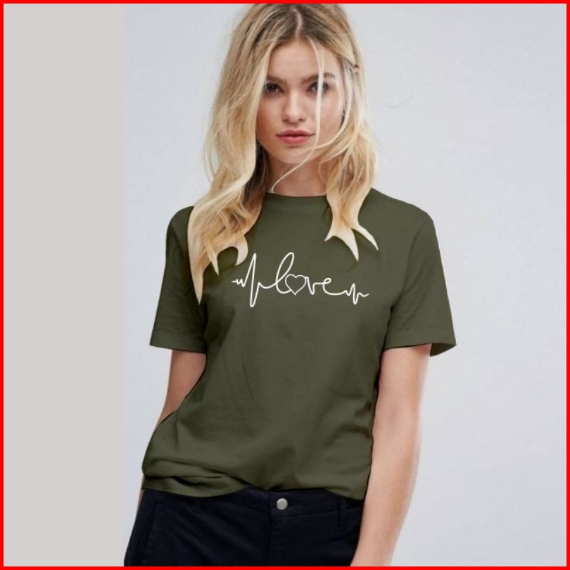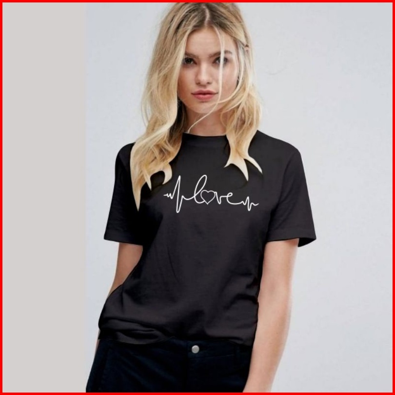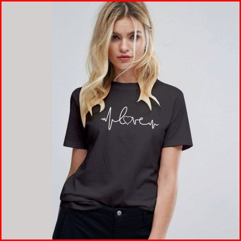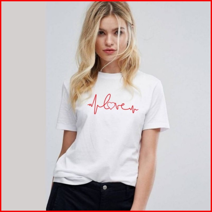Kaos Wanita O-neck Love Jantung Bahan Cotton Combed 30s