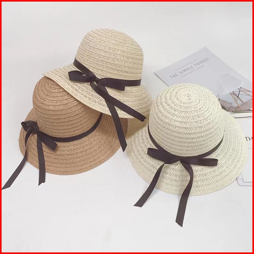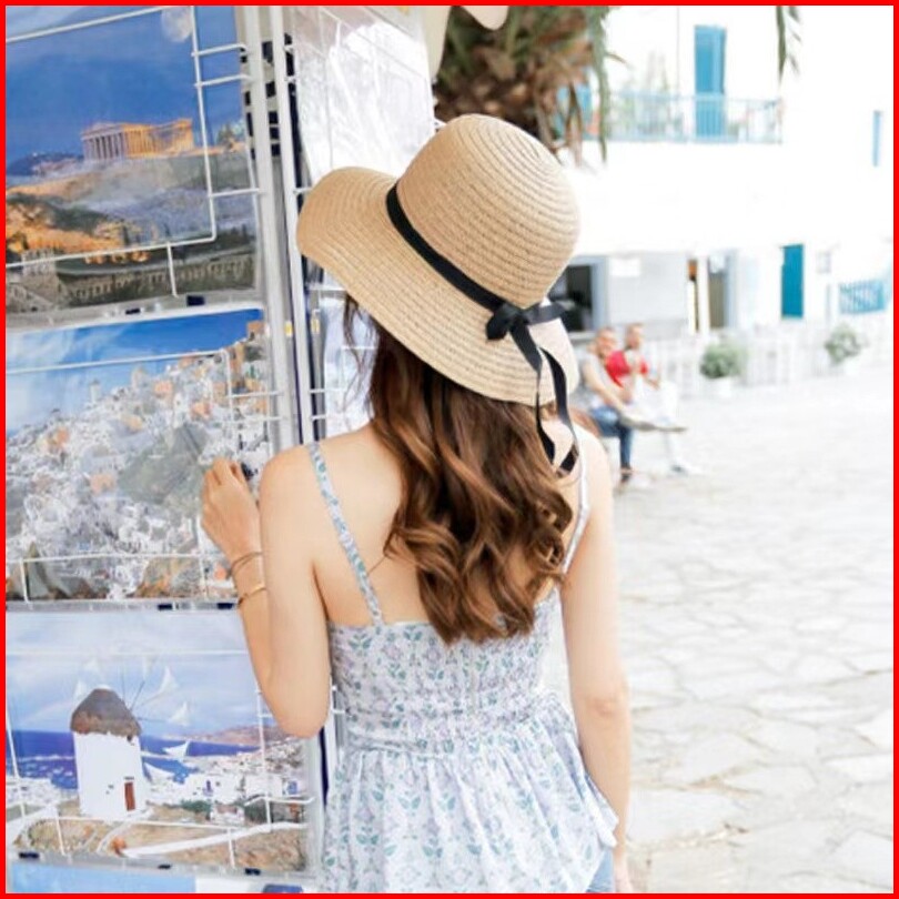 Tp30 Topi Pantai Wanita Bahan Jerami Topi Musim Panas Pelindung Dari Sinar Matahari