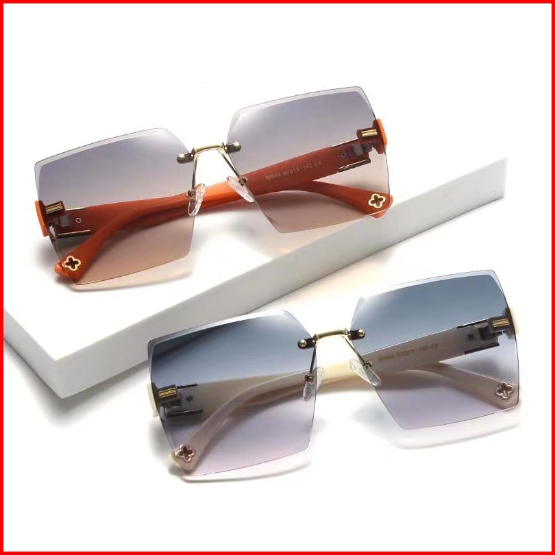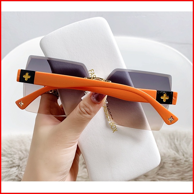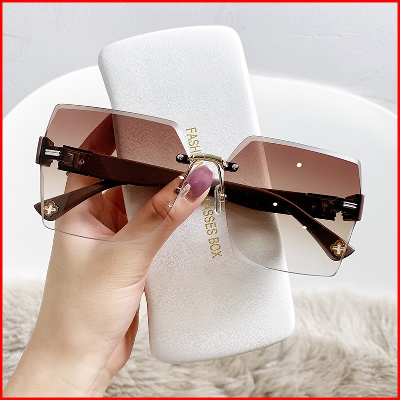 Km64 Kacamata Warna Gradasi Tanpa Bingkai Oversize Kacamata Gaya Fashion Korea