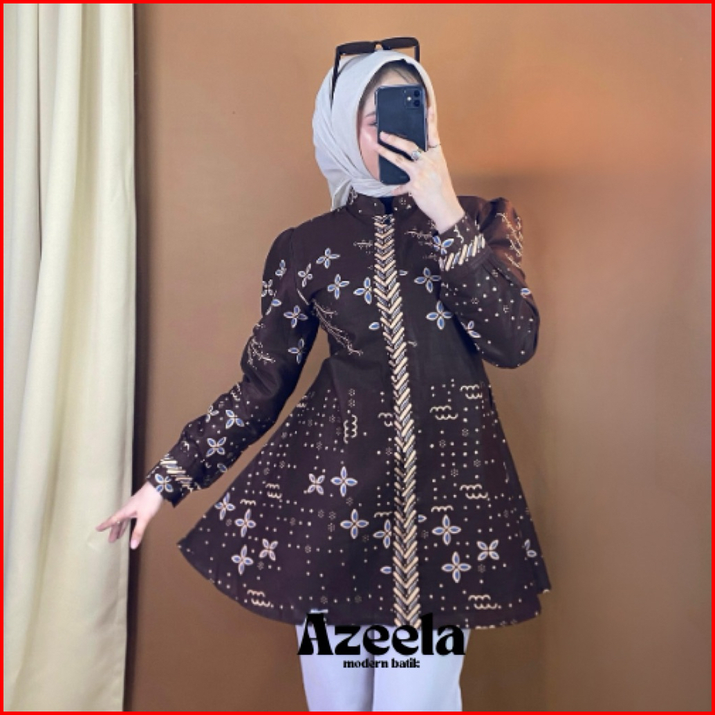 Tey-17 Batik Wanita Asj Sa Hrb026 Kenongo Kemeja Mahogany