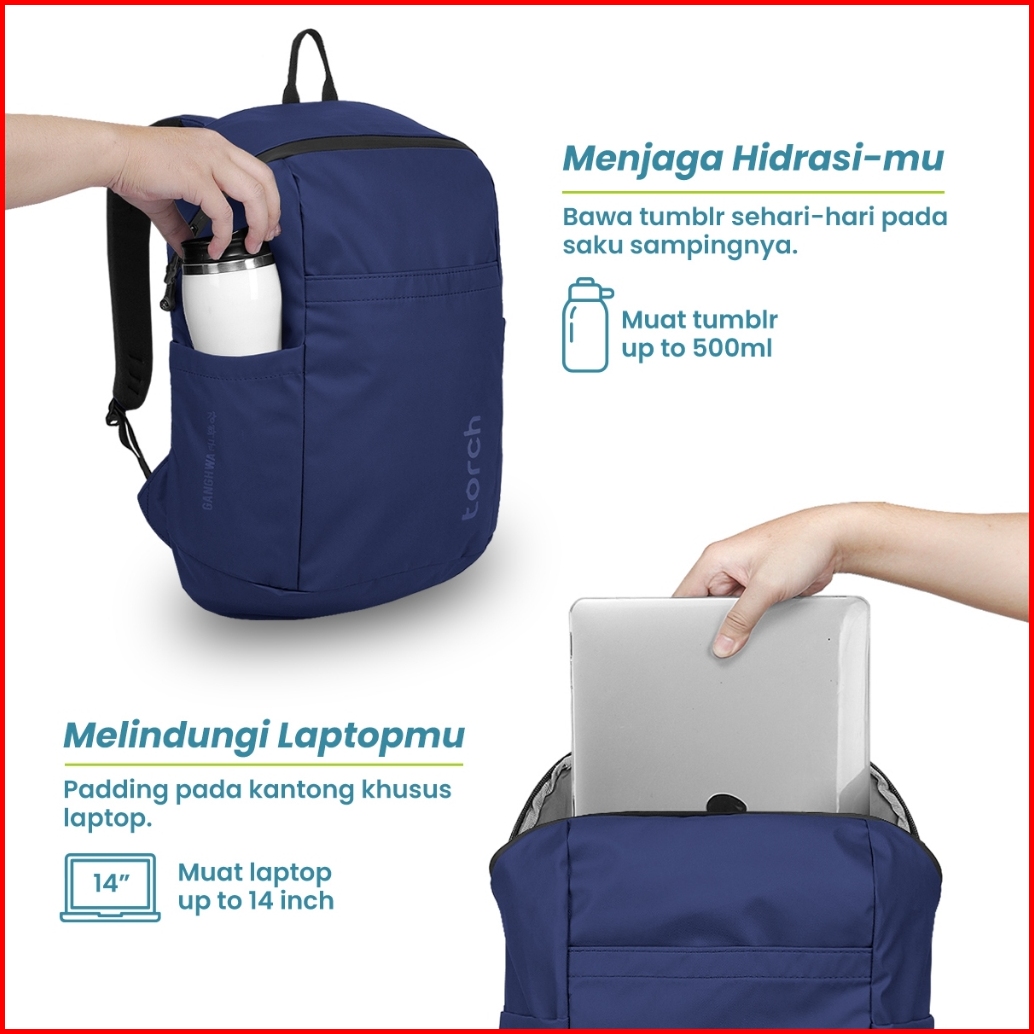 Torch Ganghwa Tas Ransel Punggung Sekolah Kerja Travelling Laptop Pria Wanita Tahan Air 19 Liter - Daily Backpack Water