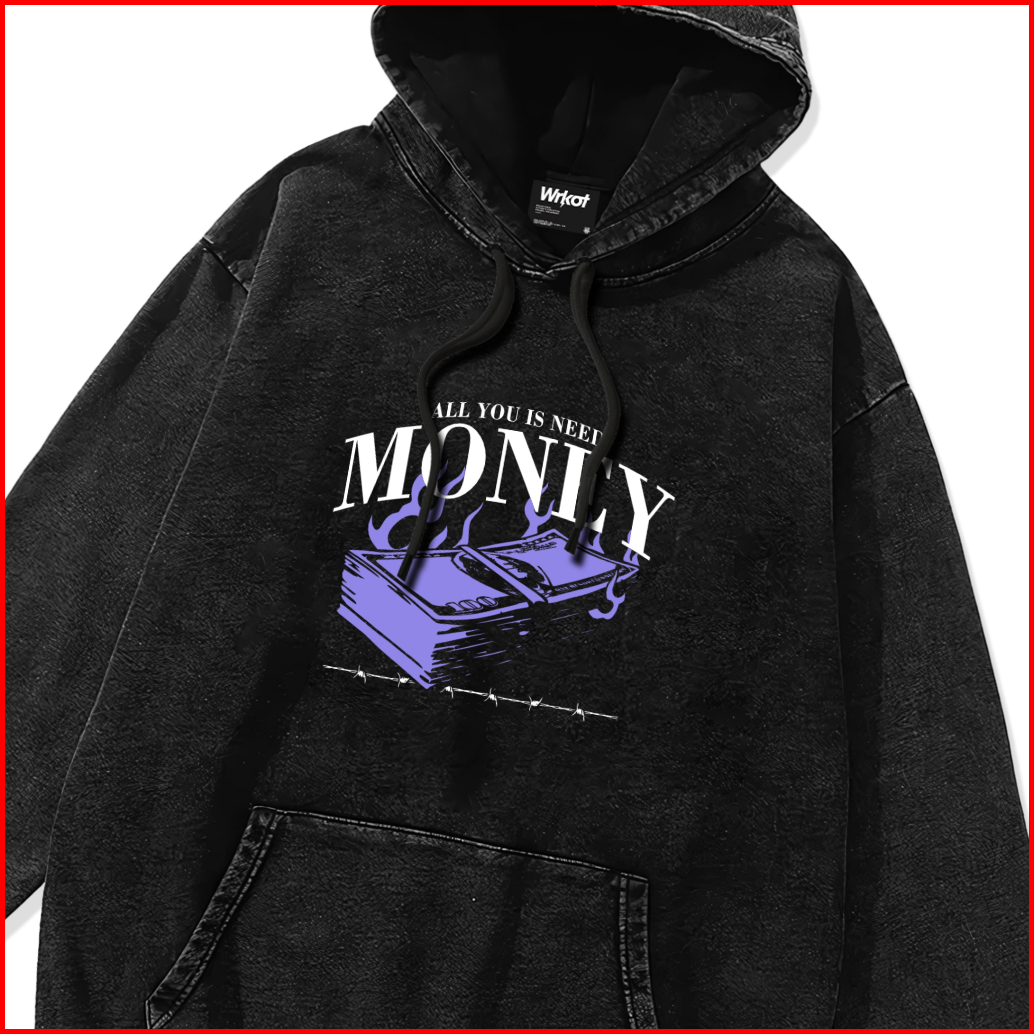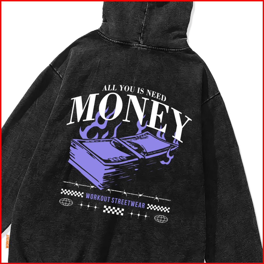 Workout Streetwear Sweater Hoodie Washed Pullover Is Money