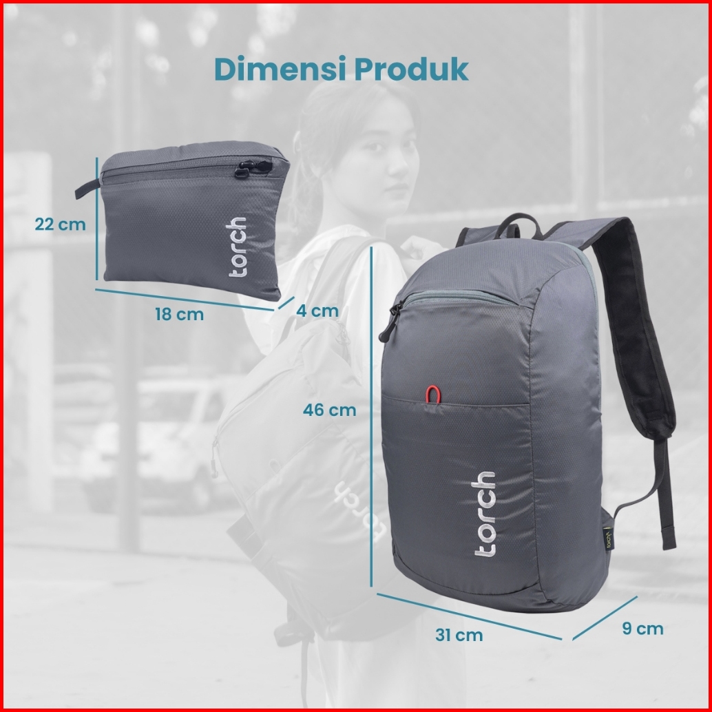 Torch Ersalona Tas Ransel Lipat Punggung Sekolah Pria Wanita Anti Air 19 Liter - Foldable Backpack Water Repellent